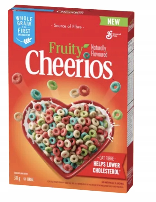 Cheerios — это фруктовые хлопья для завтрака в форме разноцветной буквы «О», которые не только привлекают внимание, но и имеют восхитительный вкус. Изготовленные из 100% цельнозернового овса, они содержат натуральный ароматизатор и грушевое пюре. Идеально подходит для завтрака или здорового перекуса, в том числе для детей. Они содержат овсяную клетчатку, которая помогает снизить уровень холестерина. Идеально подходит для энергичного начала дня!