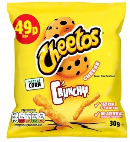 Cheetos Cheese Crunchy, несомненно, является одной из лучших закусок в США и Великобритании. Это мега сыр благодаря использованию настоящего сыра для их производства и не только ароматов. Также следует отметить, что они были сделаны из кукурузной муки, что, несомненно, приводит к уникальному вкусу.