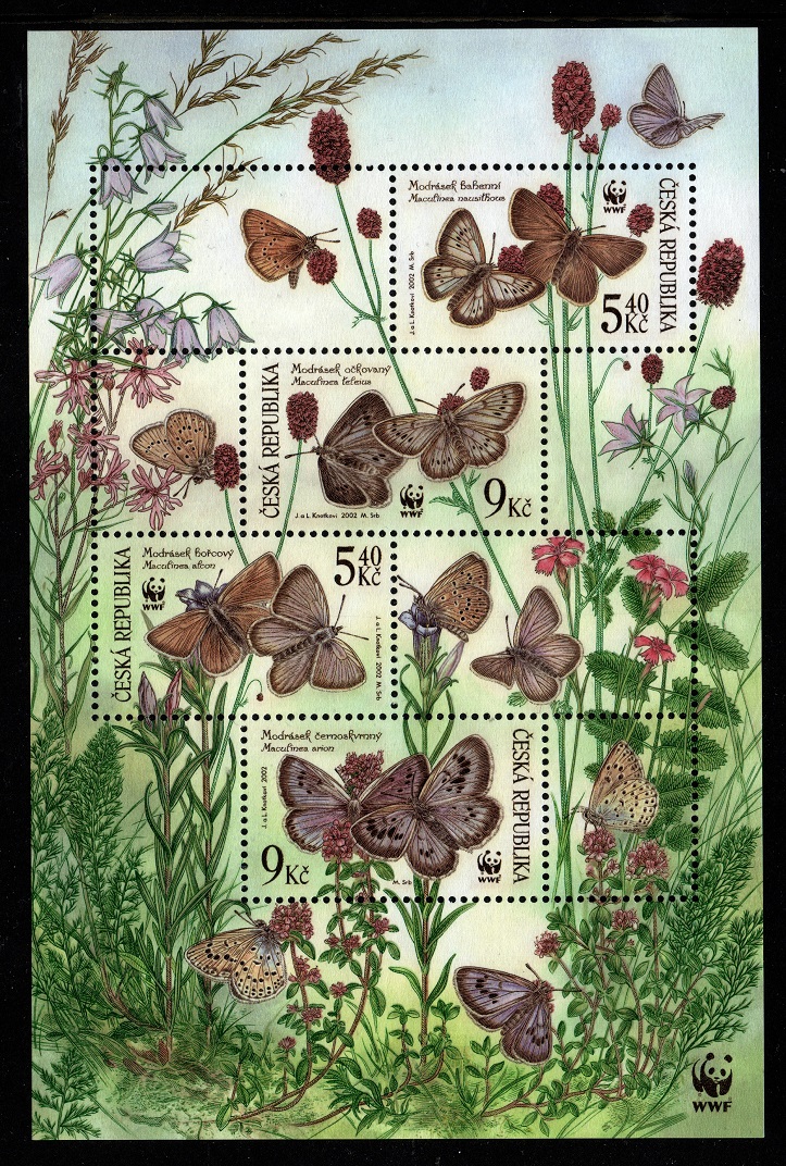 Чехия/Мин.лист 324-327 (Фауна-Бабочки) 2002 г./чист.