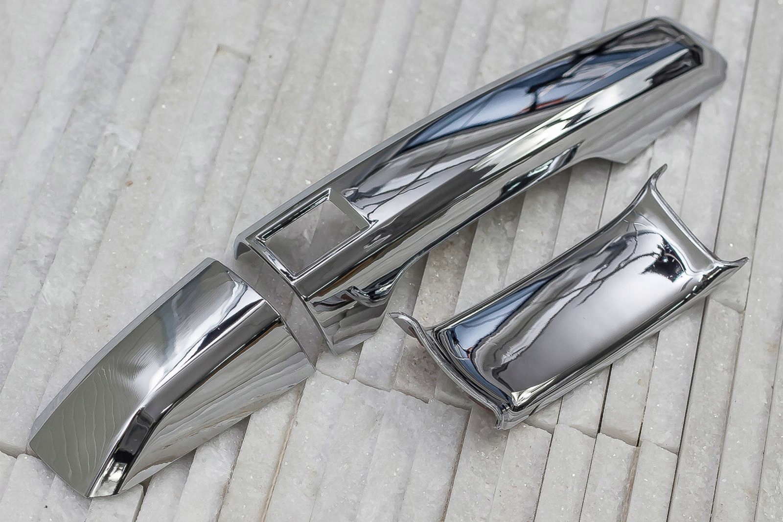 Декоративные хромированные накладки на дверные ручки — дополнение, дополняющее стиль автомобиля нотками спортивной элегантности. Идеально гармонируя с линиями автомобиля, они меняют облик дверных ручек модели EVOQUE, делая их настоящим украшением автомобиля. Изделие изготовлено из высококачественного хромированного АБС-пластика.
