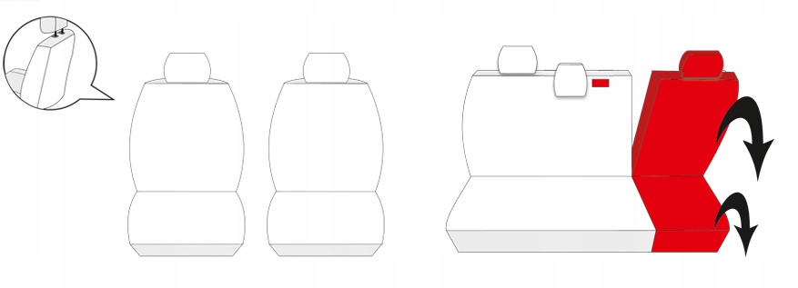 В зависимости от модели автомобиля в комплект входят чехлы на такие элементы, как передний или задний подлокотник, молнии, позволяющие использовать столики, и карманы в спинках передних сидений, чехлы на складные подголовники, боковые чехлы на колесные арки ( столбцы).