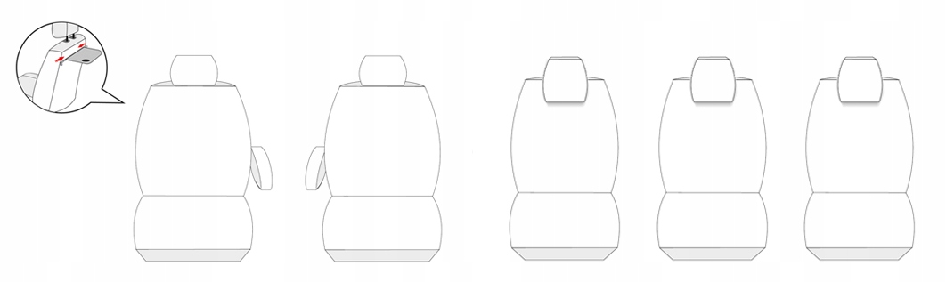 В зависимости от модели автомобиля в комплект входят чехлы на такие элементы, как передний или задний подлокотник, молнии, позволяющие использовать столики, и карманы в спинках передних сидений, чехлы на складные подголовники, боковые чехлы на колесные арки ( столбцы).