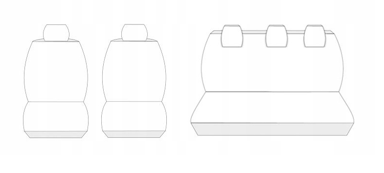 В комплект входит полный комплект чехлов на сиденья и подголовники, а также - в зависимости от модели автомобиля - чехлы на колонки/колесные арки, передние подлокотники (в версиях, в которых они входят в комплект поставки). с мест) и т. д.
