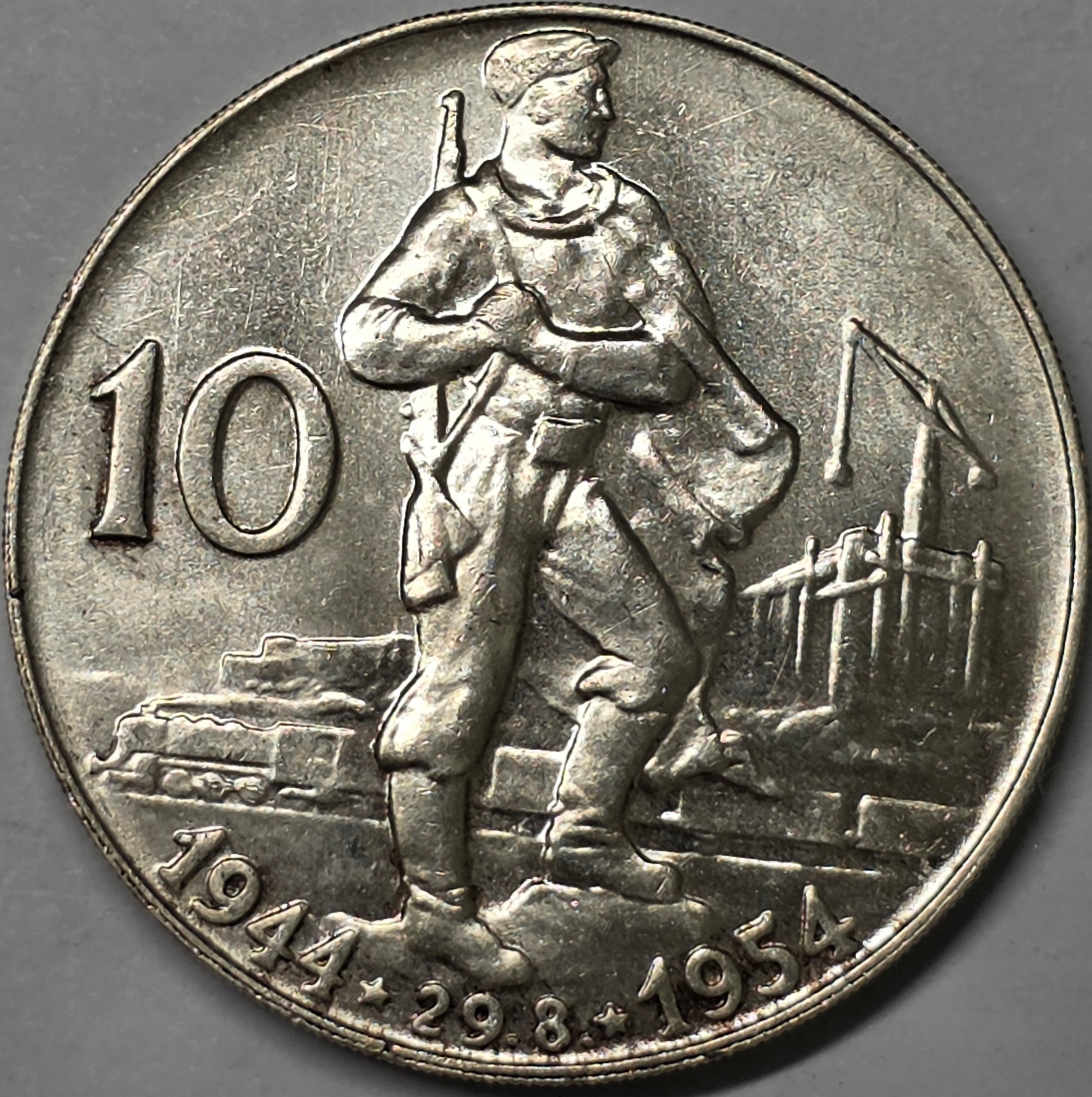 Чехословакия 10 крон 1944-1954 Годовщина Восстания интересное S184