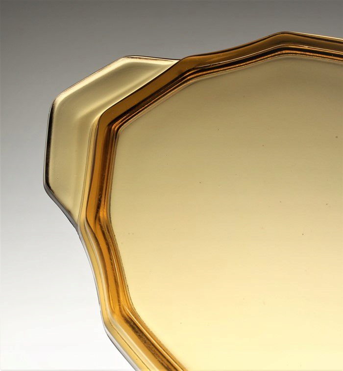 Графин и поднос из прессованного медового стекла. Набор родом из Чехословакии. Примерно в первой/второй половине 20 век.Стиль арт-деко.