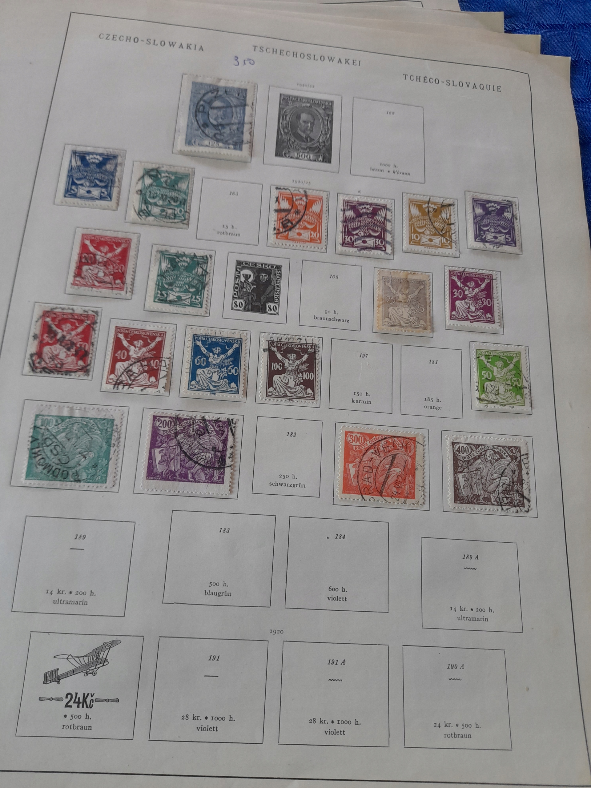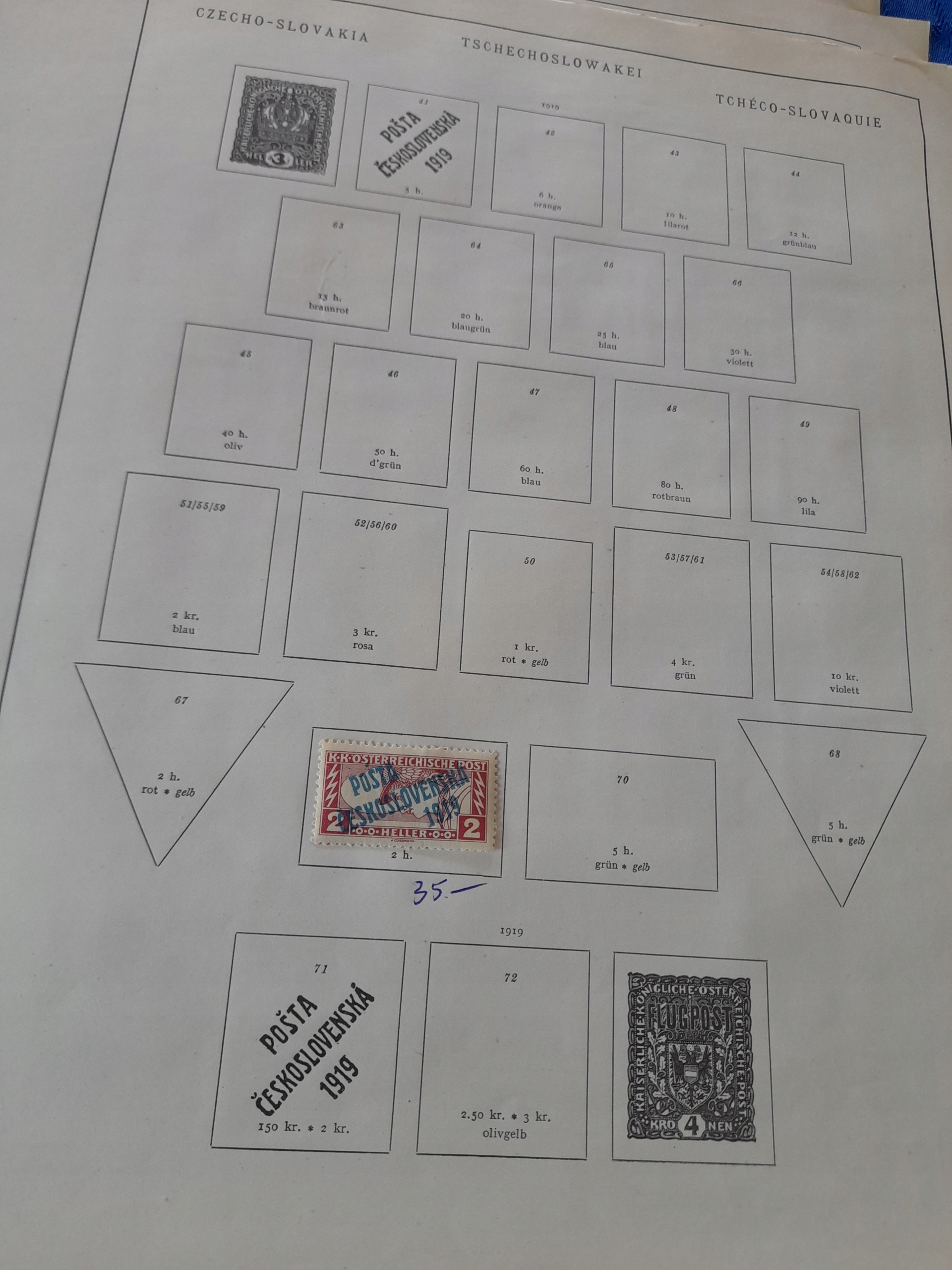 ЧЕХОСЛОВАЧЧИНА. ЦІННА ВІКОВА КОЛЕКЦІЯ ДОВОЄННИХ МАРОК НА 13 КАРТКАХ
