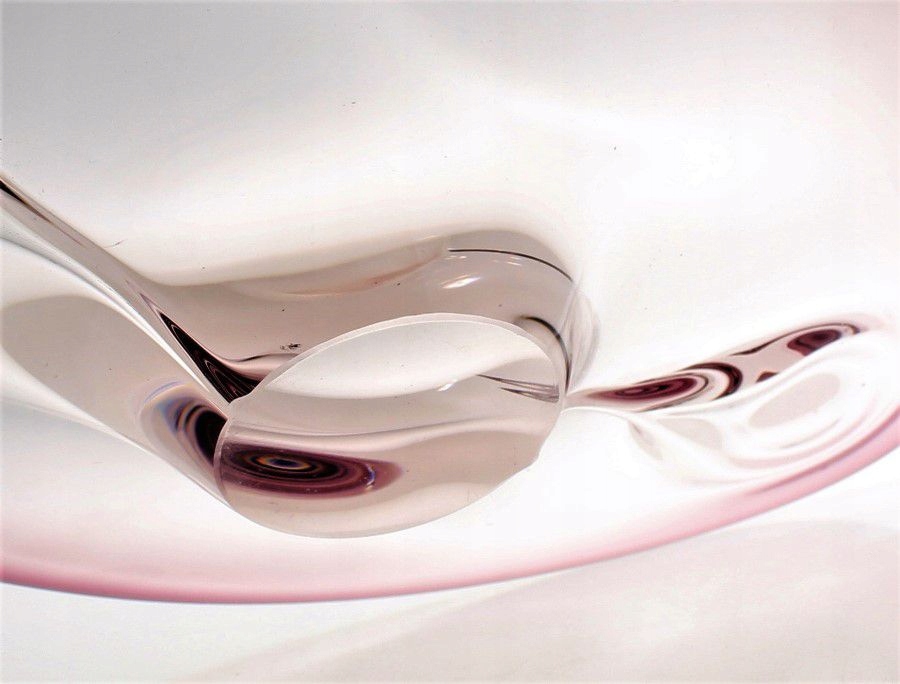 Внутри неглубокой чаши чисто, без осадка. Неглубокие морщины на стекле и единичные функциональные царапины внутри и снаружи чашки.