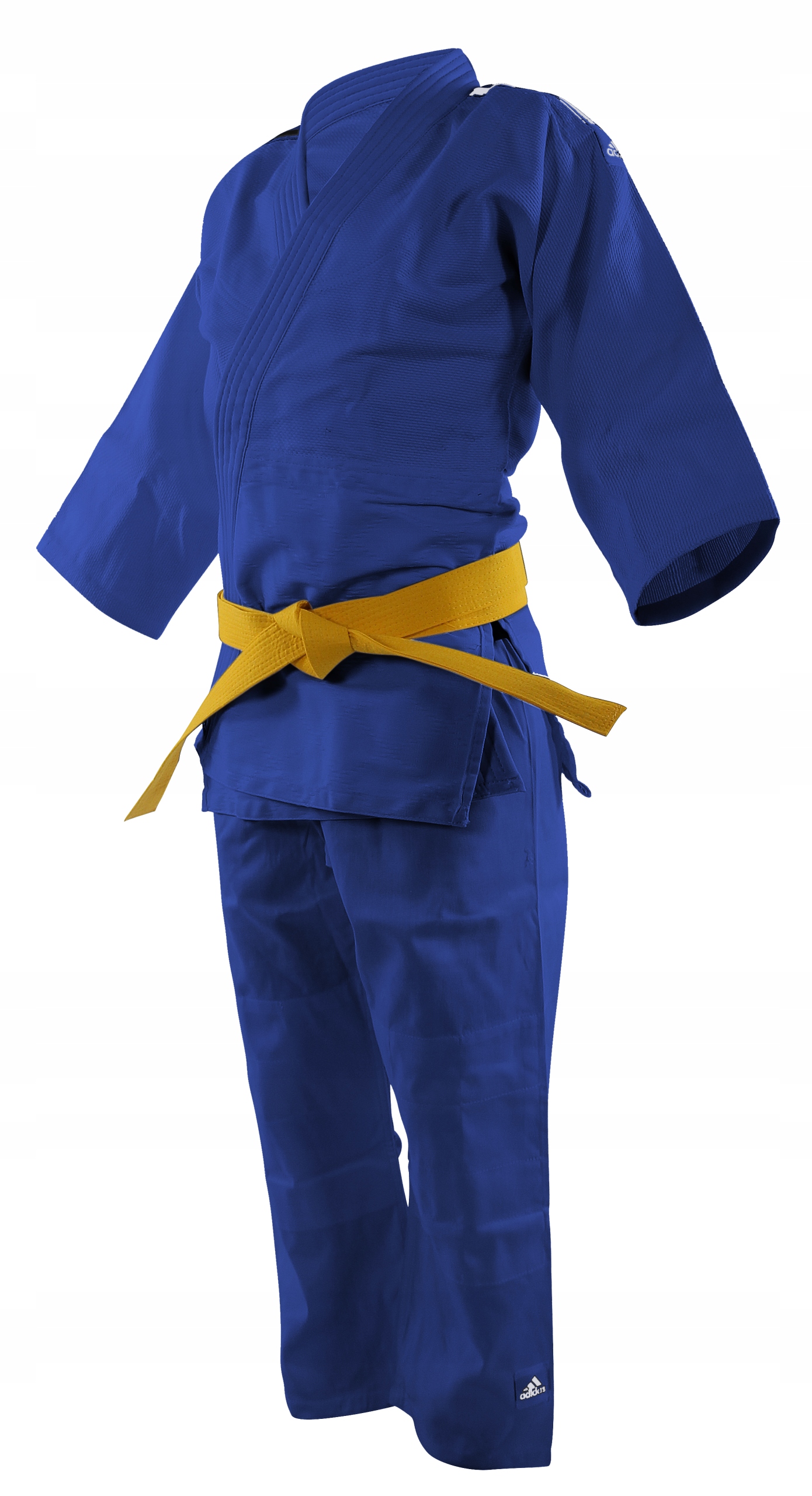 Кимоно доступно в белом и синем цветах. Гладкие нашивки с белыми полосками и логотип Adidas на плечах. Три полоски повышают престиж и эстетичный вид кимоно. Внизу воротника имеется гладкая нашивка с логотипом Adidas. В комплект входят толстовка, брюки на резинке и белый ремень.