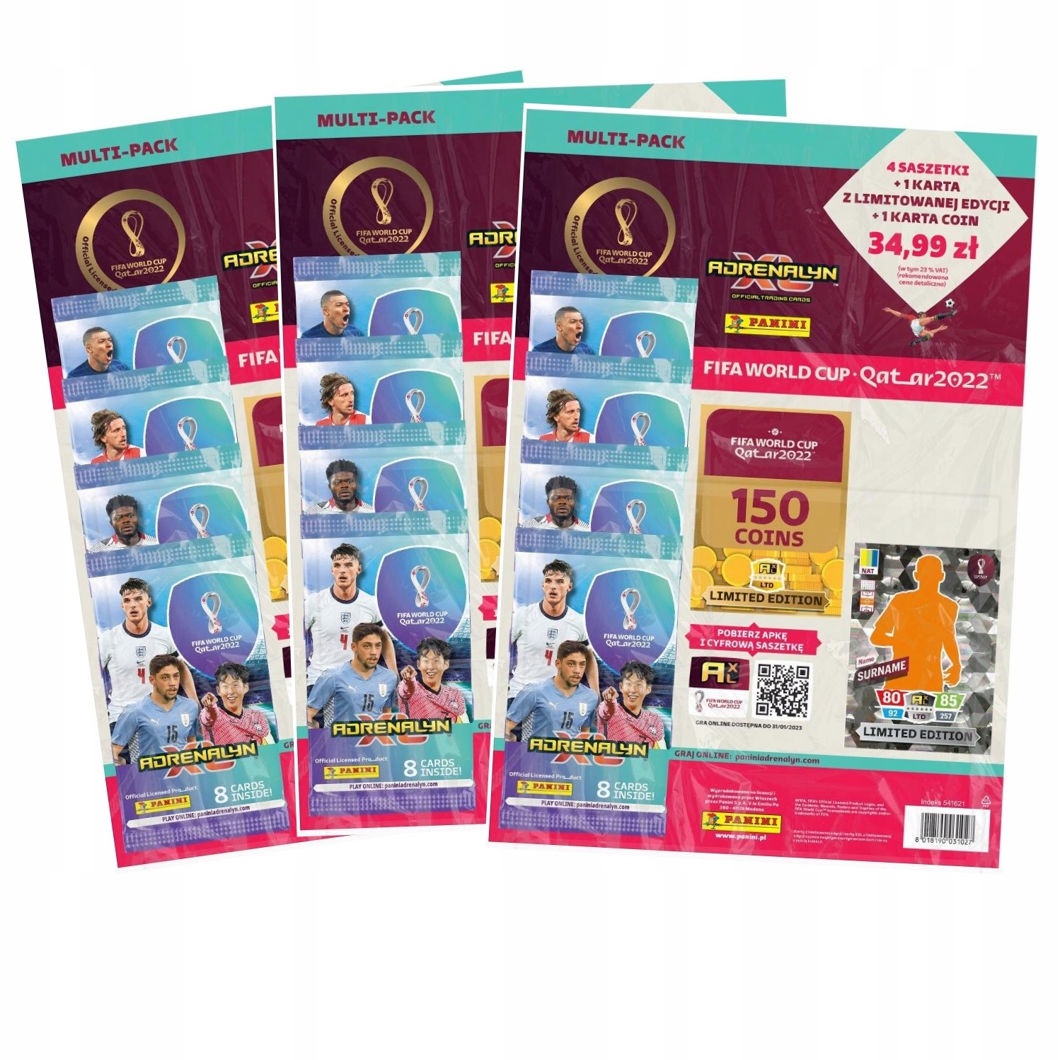 Чемпионат мира по футболу FIFA Qatar 2022 ADRENALYN XL — 12 пакетиков для карточек + 3 ограниченных карточки — всего 99 карточек