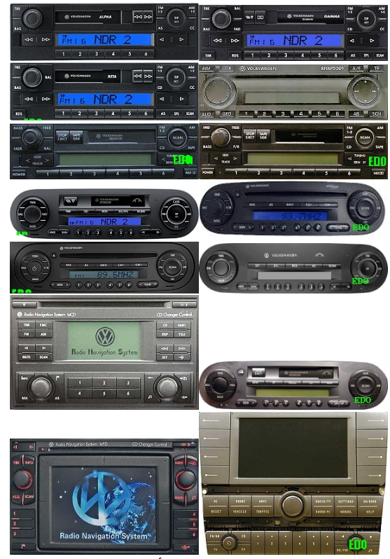 АЛЬФА 5, БЕТА Т4, БЕТА 5, ГАММА 5, НОВЫЙ ЖУК АЛЬФА 5, ГАММА, НОВЫЙ ЖУК ГАММА CD, муссон, ФАЭТОН, РАПСОДИЯ, ПРЕМИУМ 4, ПРЕМИУМ 5 CLARION, VWZ9Z7 VW Z6Z9, RNS-MCD , МФД НАВИ