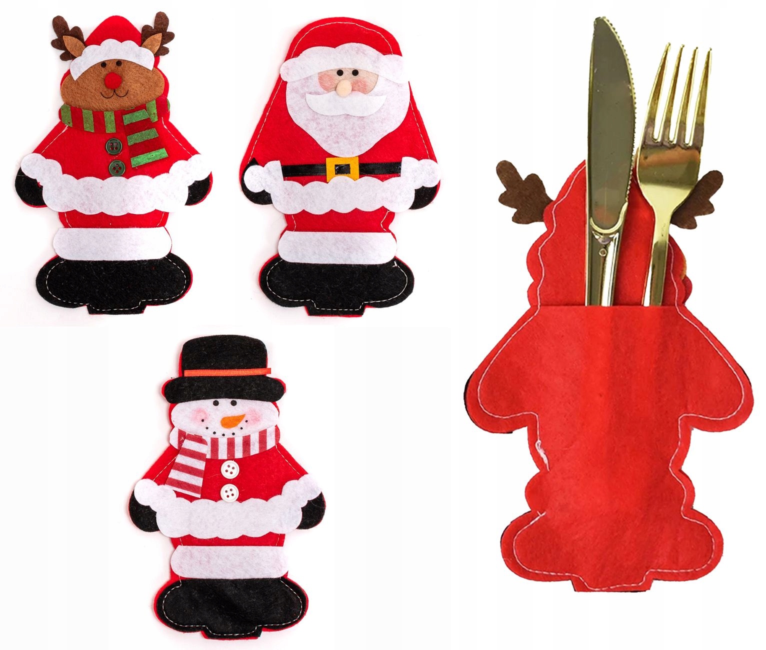 Красивые красные чехлы для столовых приборов с мотивом оленя, Санта-Клауса и снеговика. Красивое украшение для дома к праздникам.
