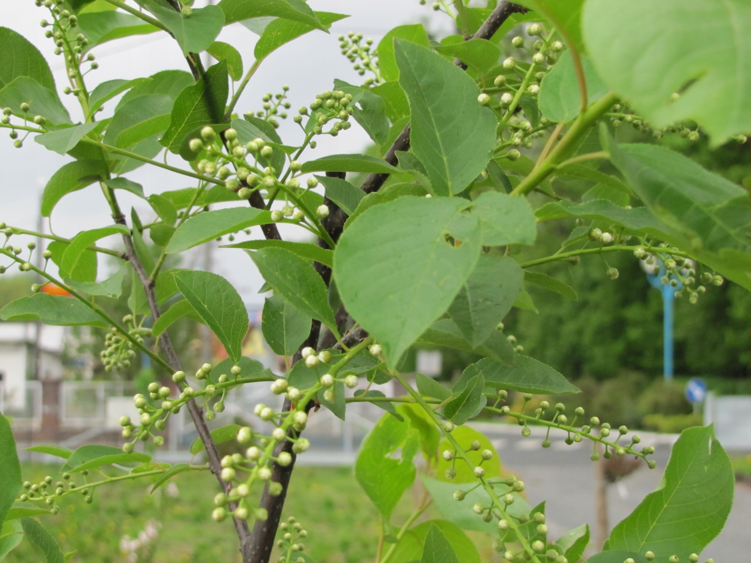 Аборигенный вид, часто встречающийся в прибрежных лесах. Обычно растет древовидно, достигая до 15 м высоты, или в виде высокого кустарника со свисающими ветвями. Кора ствола и ветвей черно-серая, позднее растрескивающаяся. Имеет эллиптические листья длиной до 12 см, с верхней стороны тускло-зеленые, с нижней слегка сизоватые, осенью желтеющие. У него рано появляются листья. Это также одно из самых ранних деревьев, зацветающих весной: период цветения приходится на апрель и май. Цветки пятилепестковые, белые, диаметром около 1,5 см, с довольно неприятным запахом, собраны в свисающие кисти длиной до 15 см и содержат от 20 до даже 40 цветков. Плоды размером с горошину, шаровидные, черные, слегка блестящие, созревают в июне и съедобны.