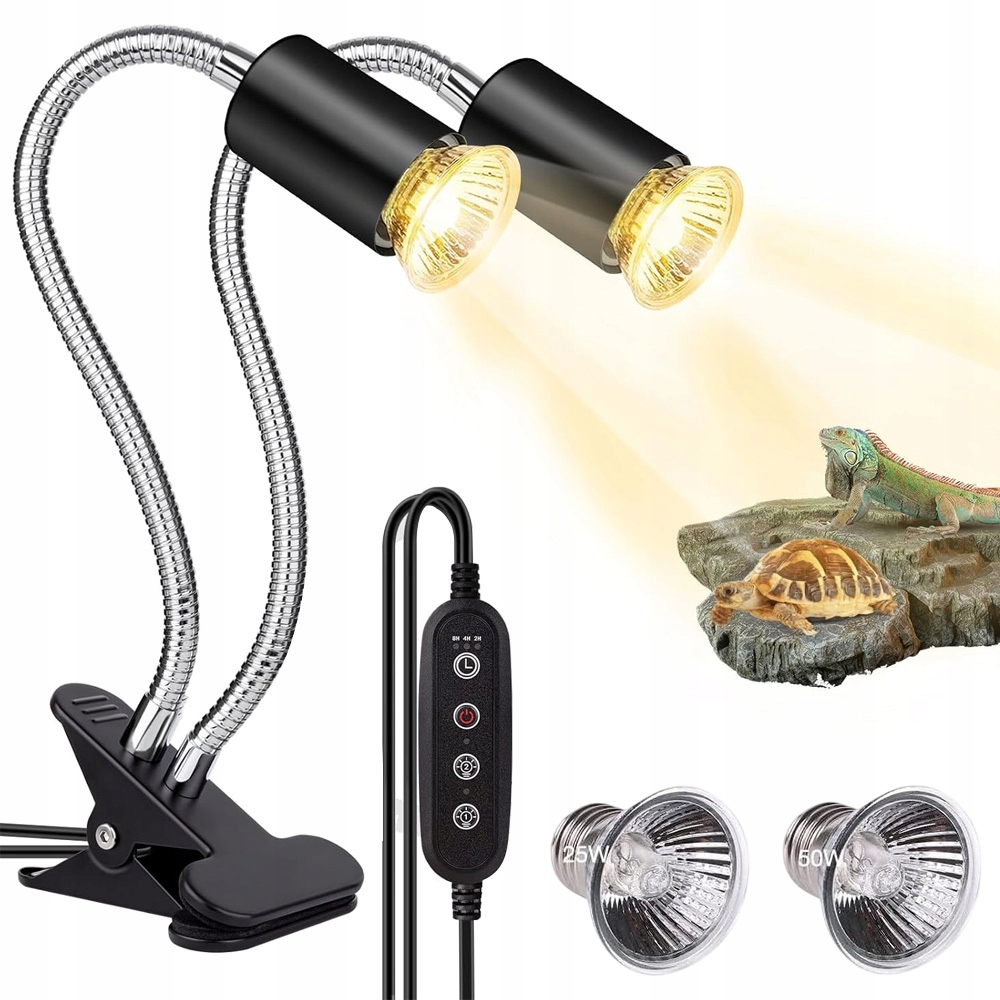 🐢【2 груши для рептилий】 В лампе для рептилий с двойной головкой используется процесс нанесения покрытия, обеспечивающий антиоксидантные и взрывобезопасные свойства. В комплект входит 1 отражатель мощностью 25 Вт и 1 отражатель мощностью 50 Вт. Имитирует солнечный свет и обеспечивает соответствующие ультрафиолетовые лучи и температуру для удовлетворения потребностей рептилий в их естественной среде обитания.