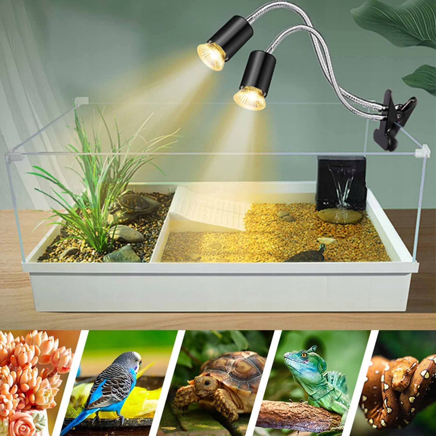 ЧЕРЕПАХА С 2 ЛАМПАМИ UVA UVB, ТЕПЛОВАЯ ЛАМПА ДЛЯ РЕПТИЛИЙ, ДЛЯ ЧЕРЕПАХ,