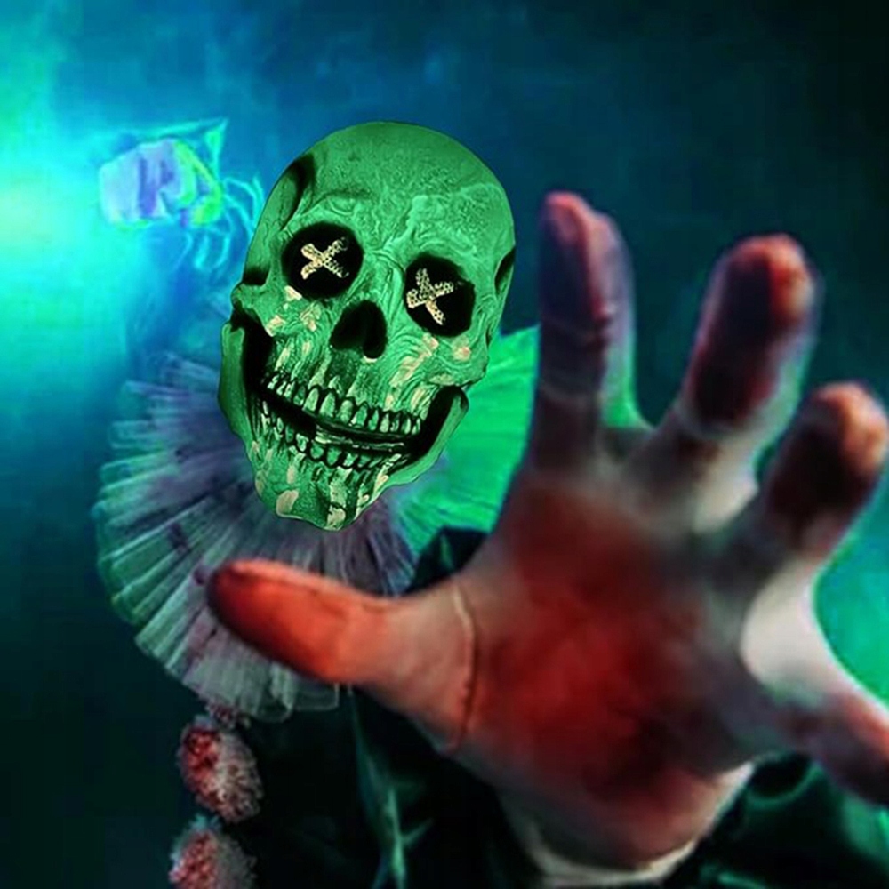 💀 Светодиодные маски - Маски на Хэллоуин покрыты красным цветом и флуоресцентными материалами. Ночью маски излучают зеленый свет. Маски Хэллоуина могут создать более сильную атмосферу Хэллоуина. Скелетная маска имеет перфорации для глаз и носа, так что вы можете дышать свободно, комфортно и дышать.