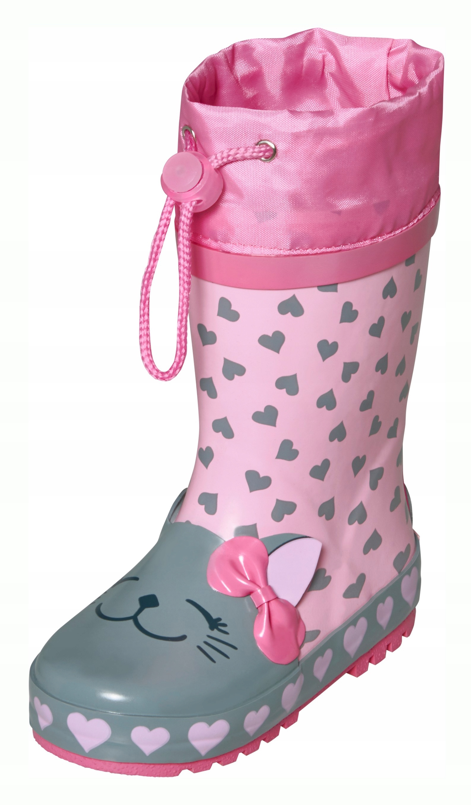 В путешествие с очаровательным котенком! В этих резиновых ботинках малышей ждут незабываемые приключения. Изготовлены из высококачественного натурального каучука, что делает их гибкими и на 100% водонепроницаемыми. Они характеризуются круглым мягким носком и резиновой нескользящей подошвой с защитой. Верхний воротник имеет манжету с кулиской и стопором. Текстильная вставка съемная. Отражатели обеспечат вашу безопасность в темноте или в плохую погоду.