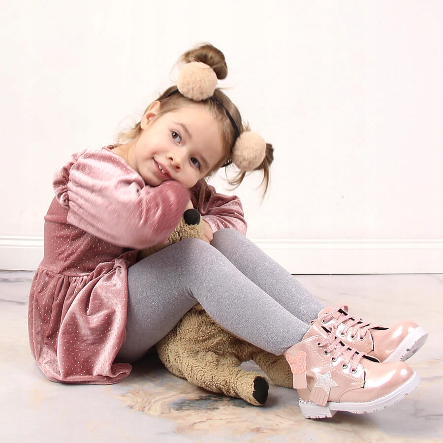 Блестящие утепленные ботильоны для девочек розового цвета Potocki PMW61060