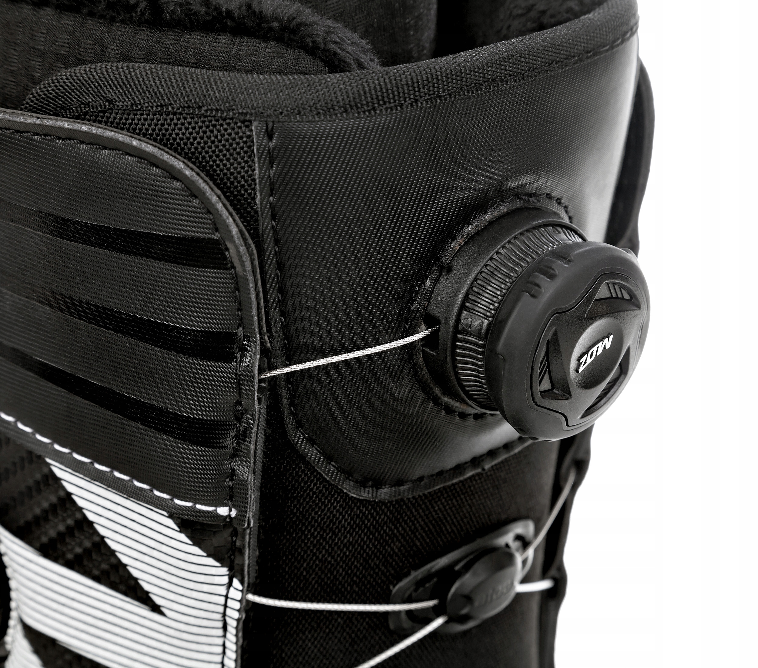 - Dual MOZ System - двойная система быстрой шнуровки MOZ, гарантирующая очень точное прилегание обуви к ноге. Две отдельно работающие ручки позволяют независимо затягивать среднюю часть стопы и верхнюю часть обуви. Работает аналогично системе Boa или ATOP.