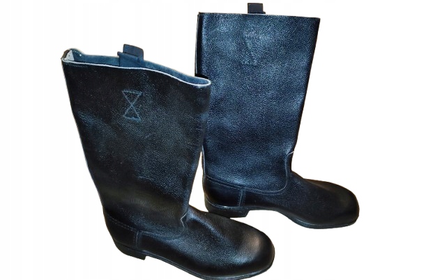 Высокие кожаные ботинки NVA DDR в очень хорошем состоянии. (Небольшой дефект на кончике). Размеры: высота - 42 см, длина подошвы - 29 см, внутренняя длина ок. 28 см (без стельки), верхний диаметр - 39 см, отметки размера на этикетке нет. Размер 42.