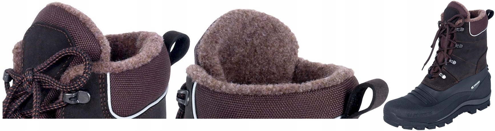 Имеют нескользящую подошву и отличное сцепление с мокрой и ледяной поверхностью. Нижняя часть обуви полностью водонепроницаемая. Верхняя часть выполнена из нубука, мягкой, водонепроницаемой кожи.