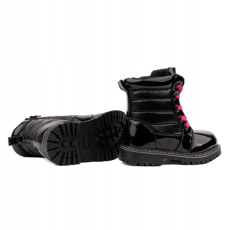 Ботильоны Zamora на толстой подошве и с протектором. С верхом, закрывающим лодыжку, и круглым носком, завязанным спереди плоскими шнурками. Сбоку имеется молния, которая облегчает надевание. Изготовлен из лакированной эко-кожи, утеплен изнутри. С дополнительными шнурками другого цвета. Ботильоны Zamora – это обувь в стиле кэжуал.