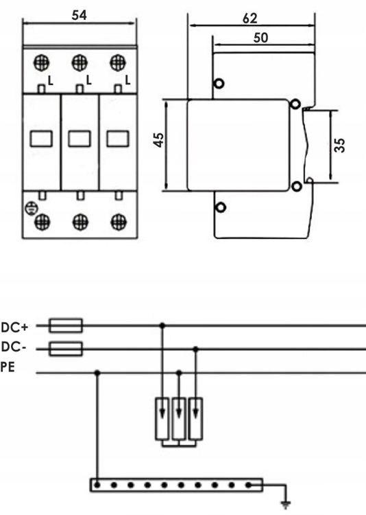Над ограничителем серфинга DC T2 C 3P 1000V Солнечная защита солнечной энергии