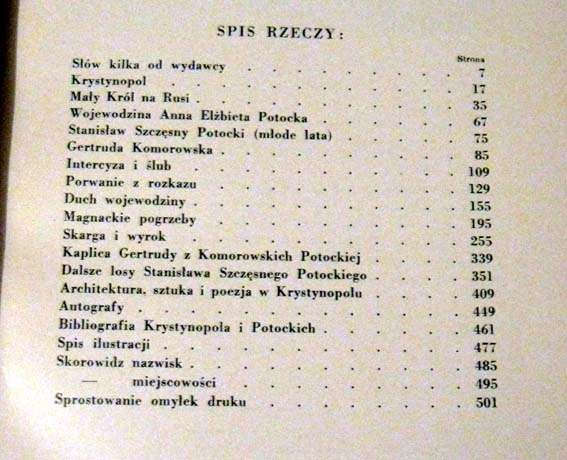 Источник монография, посвященная истории семьи Потоцки, особенно фигуру Станислава Шцесни, основателя названия титула Кристинополи. Он также содержит индекс имен и городов и библиография Кристинополя и Потоки.