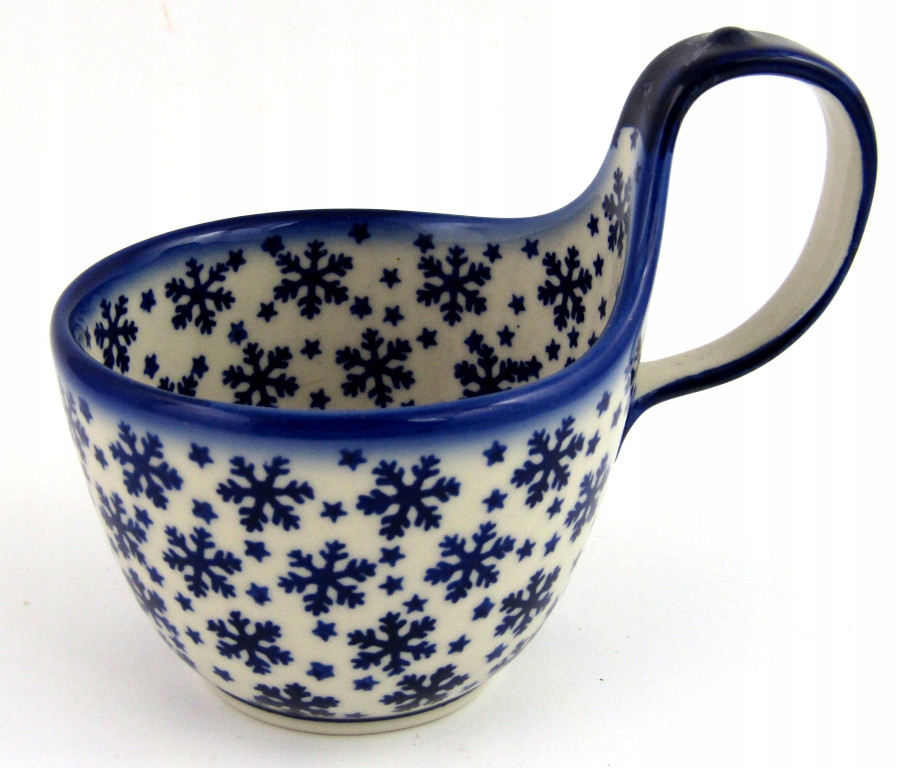 Керамический ковш для супа, воды, кухонных специй от Ceramika ''Зебра'' из Болеславца, ручная роспись. Емкость 0,4 л, высота с ручкой 13,00 см, диаметр 10,00 см. Знак "Керамика Зебра Болеславец"