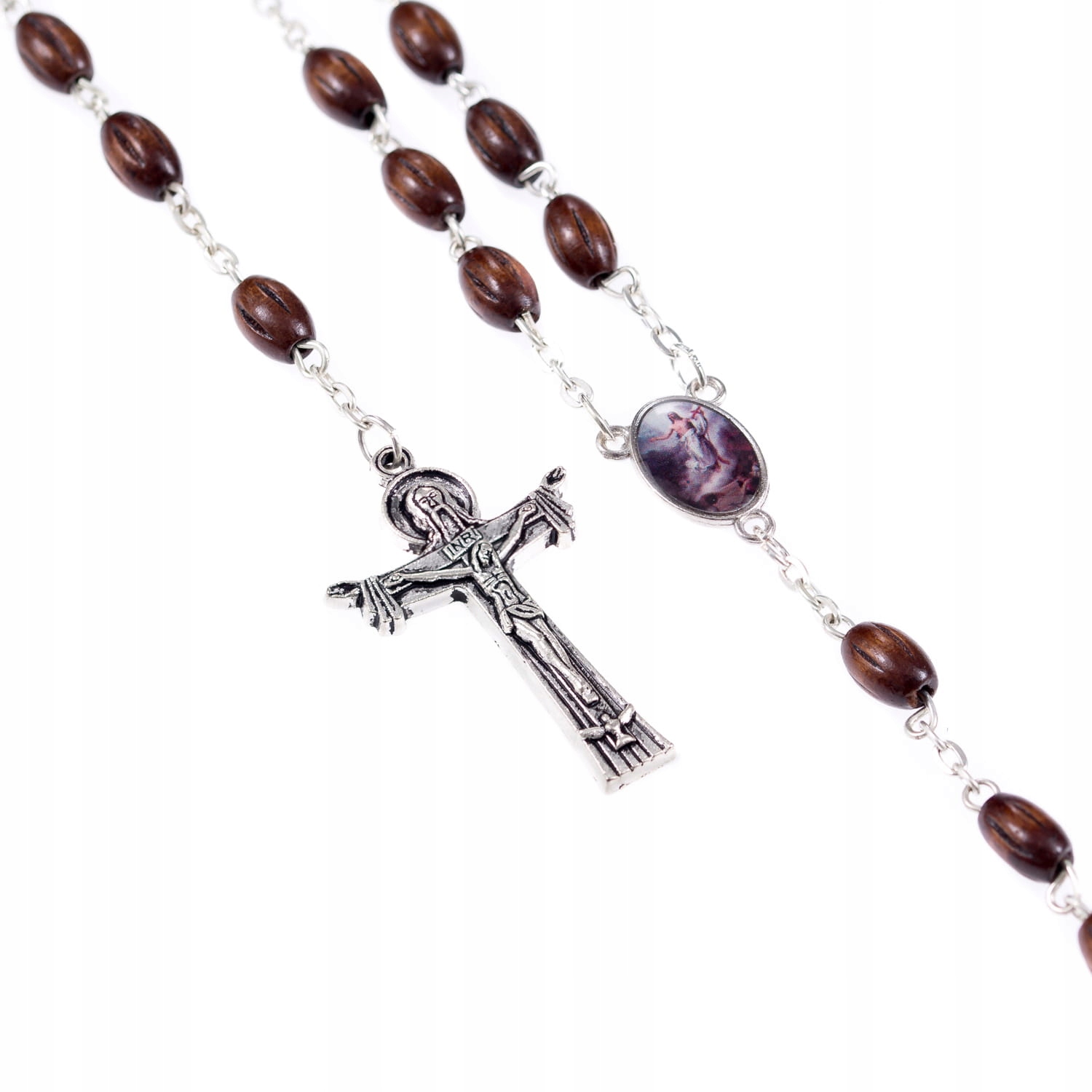 Традиционные четки из деревянных удлиненных бусин, соединенных булавкой из нержавеющей стали. В месте размышления о тайнах Святого Розария расположены сцены, изображающие Крестный ход, благодаря чему, читая эту чудесную молитву, мы можем еще больше сосредоточиться на событиях из жизни Иисуса Христа. Кульминацией четок является Крест Святой Троицы, называемый также Престолом Благодати.