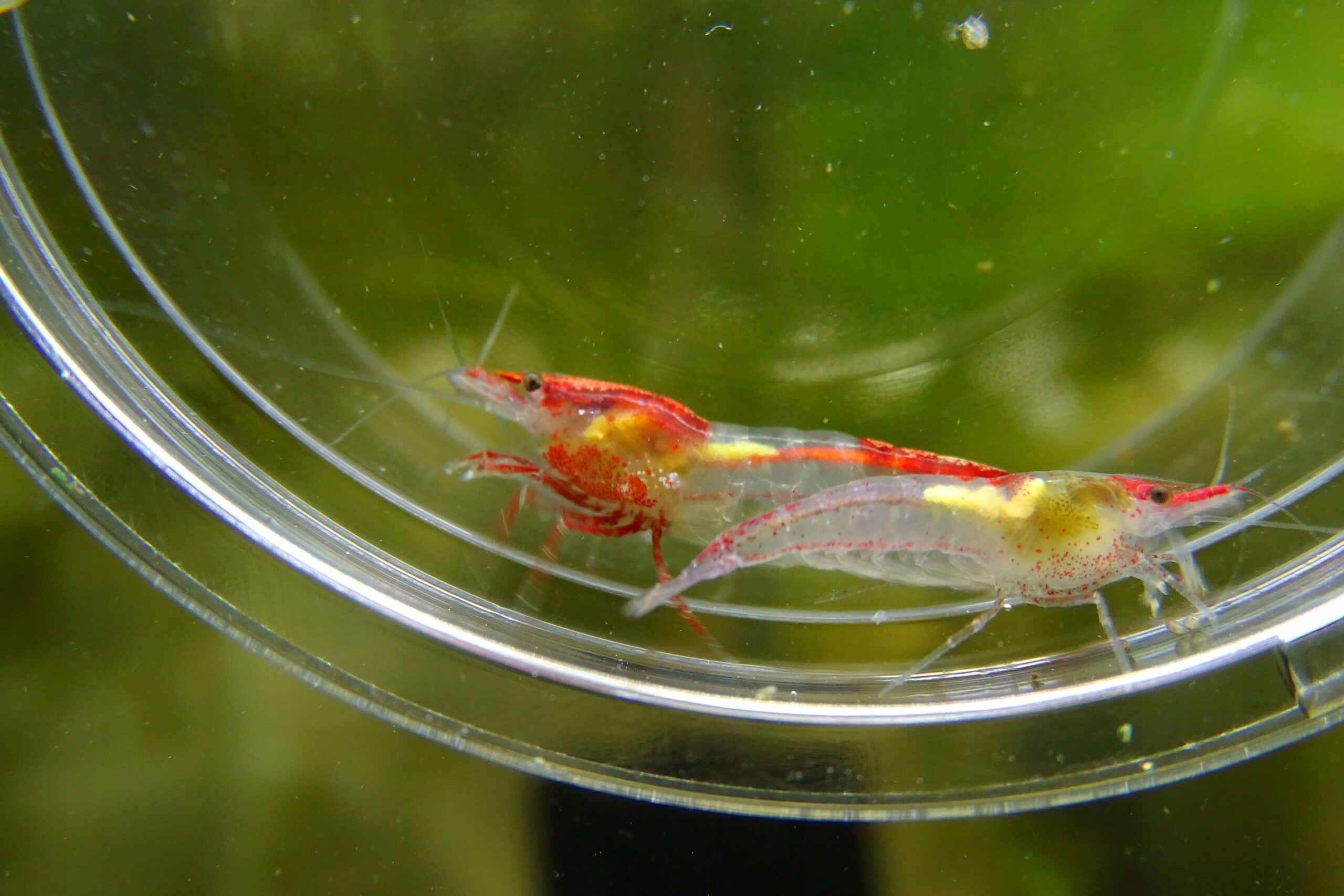 Мои наблюдения:Красные креветки рили общительны, но их не следует смешивать с креветками из того же семейства: Neocardina. Креветки скрещиваются, среди прочего: с красной, черной, оранжевой сакурой, а также с желтыми и красными вишневыми креветками.