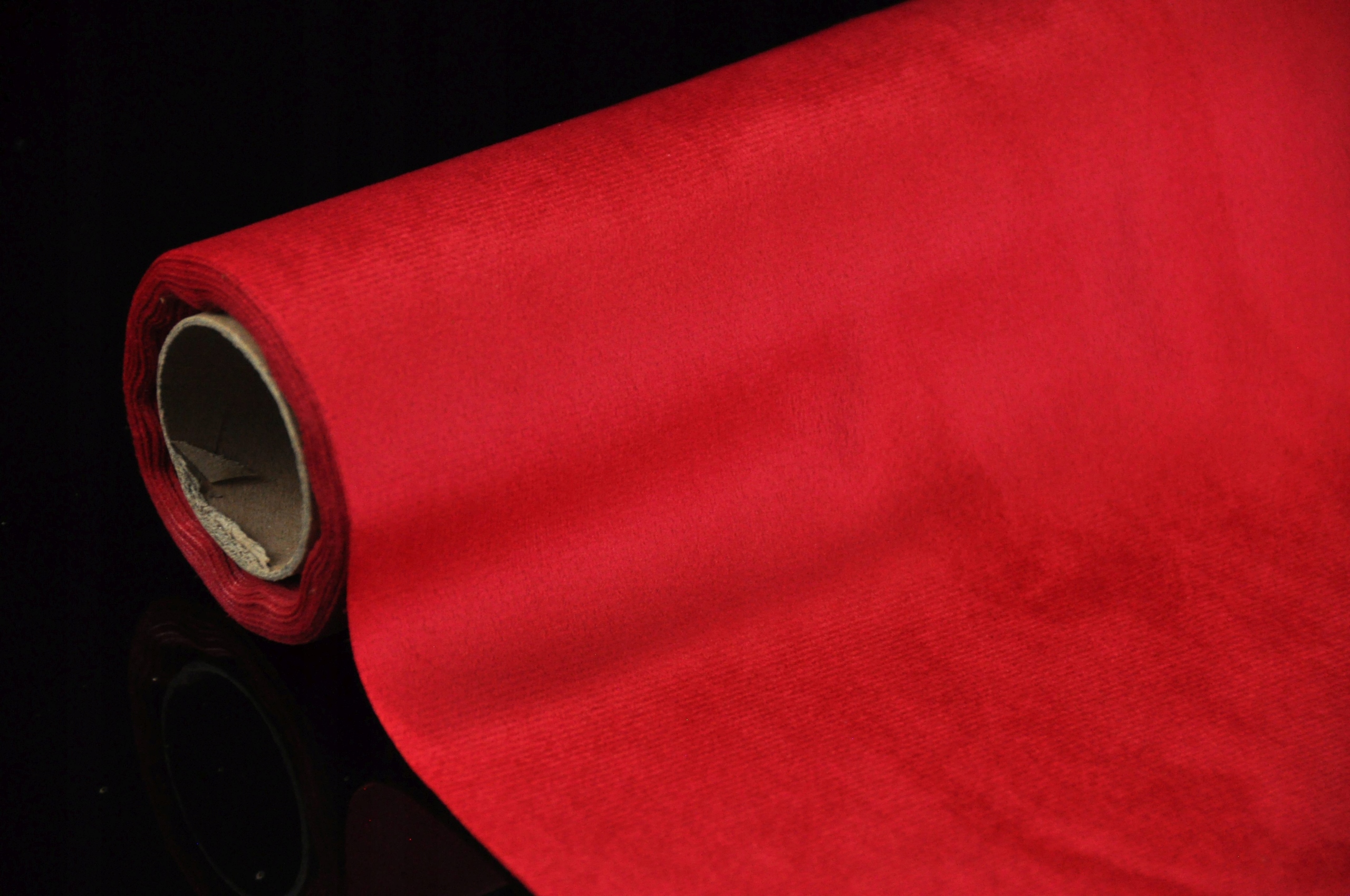 Красивая, новая красная бархатная ткань, идеально подходит для оформления столов, создания бантов и впечатляющих интерьерных композиций.