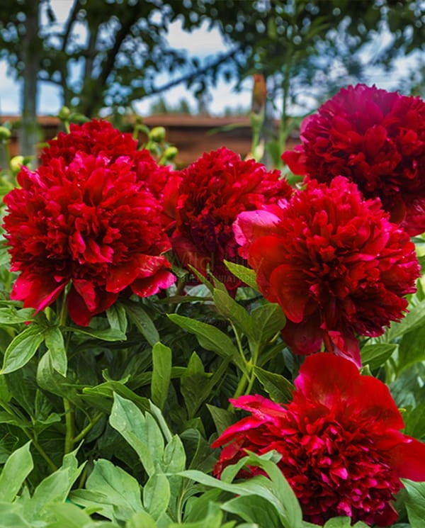 красный пион - один из самых красивых сортов с темными цветами . Цветы большие с диаметром около 18 сантиметров, полусухой, а их лепестки с бархатной поверхностью имеют интенсивный красный оттенок . Они встроены на длинные побеги с длиной 70-80 сантиметров. Сосредства являются долговечными и часто используются флористами, чтобы сделать впечатляющие букеты. стоит посадить их возле террасов, где они будут наслаждаться чувствами. Они также подходят для посадки в горшках, и, как разрез, они сохраняют свежесть в течение нескольких дней. Это разнообразие - устойчивое