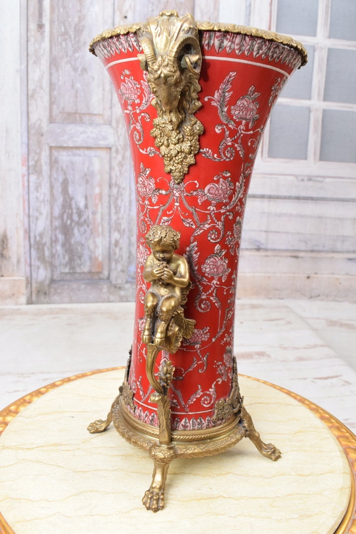 Червона порцеляна - ваза в стилі модерн - ангели Аморі - знак Франції.