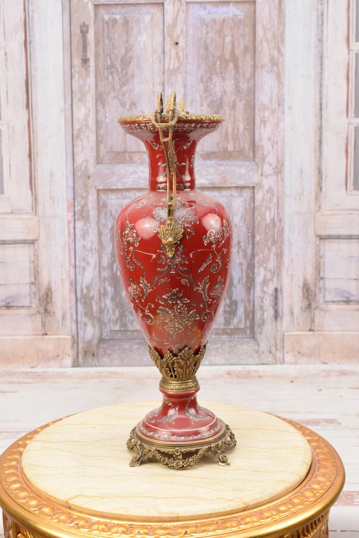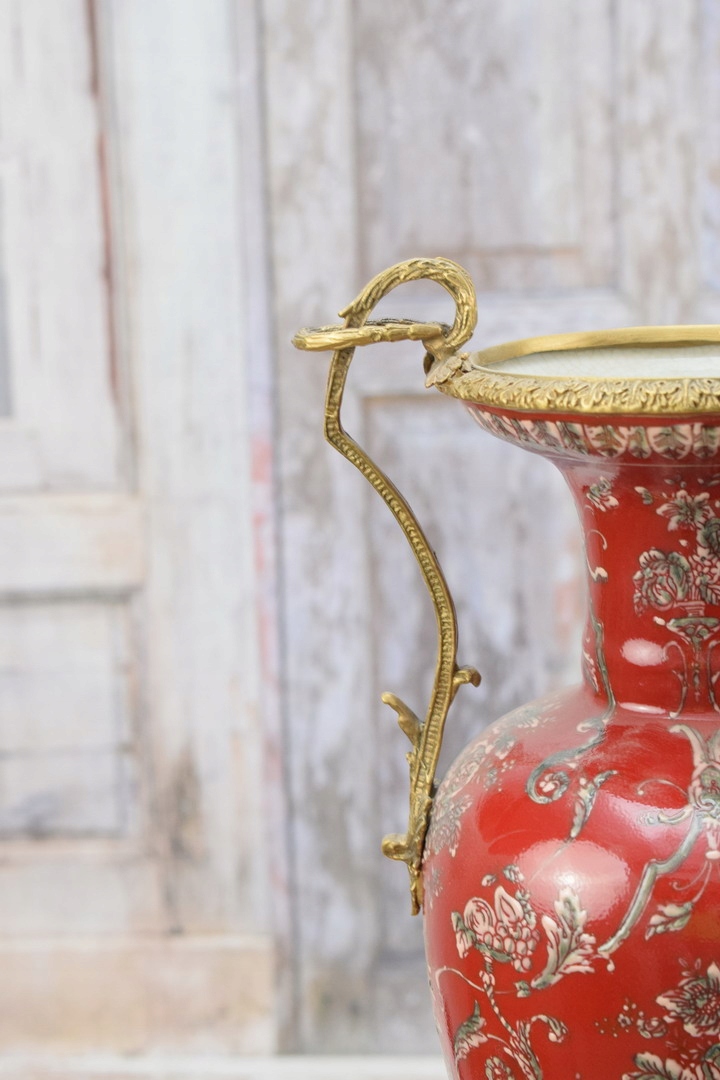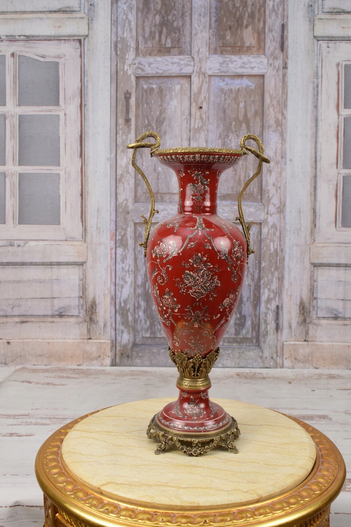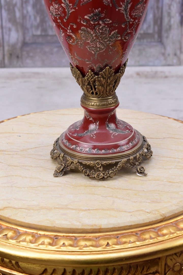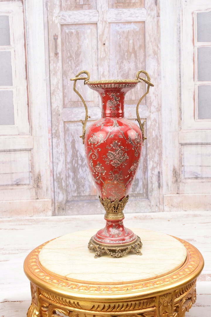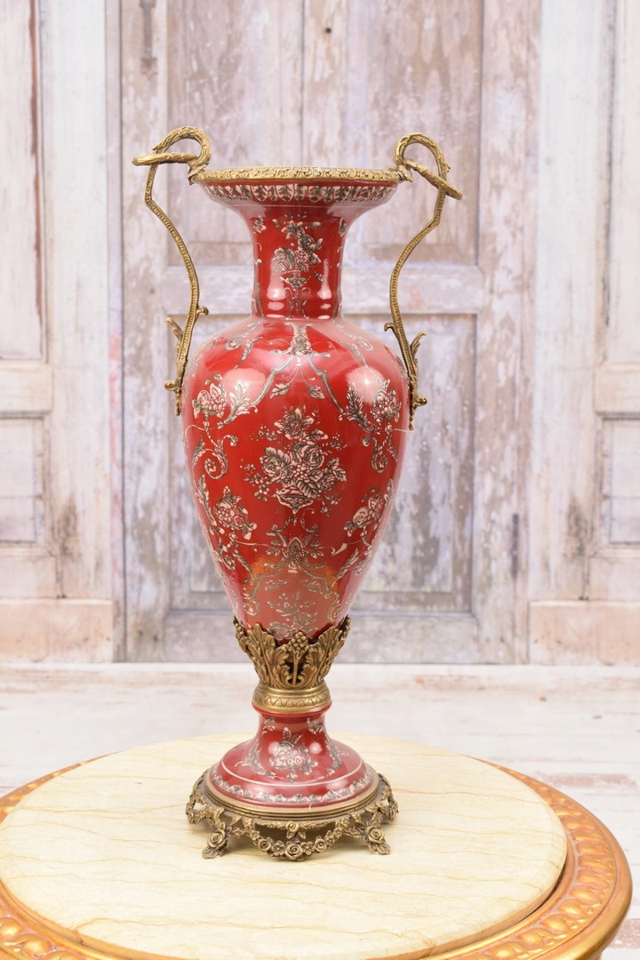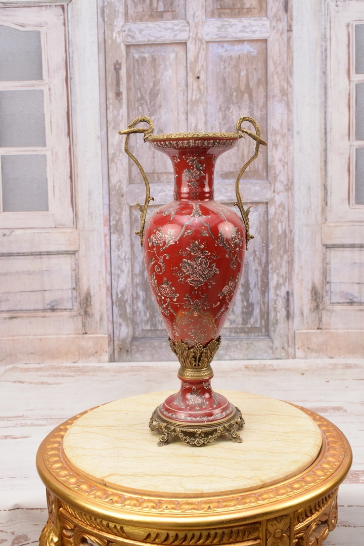Красная ваза - Ваза - Фарфор + фурнитура из бронзы - Знак в стиле модерн.