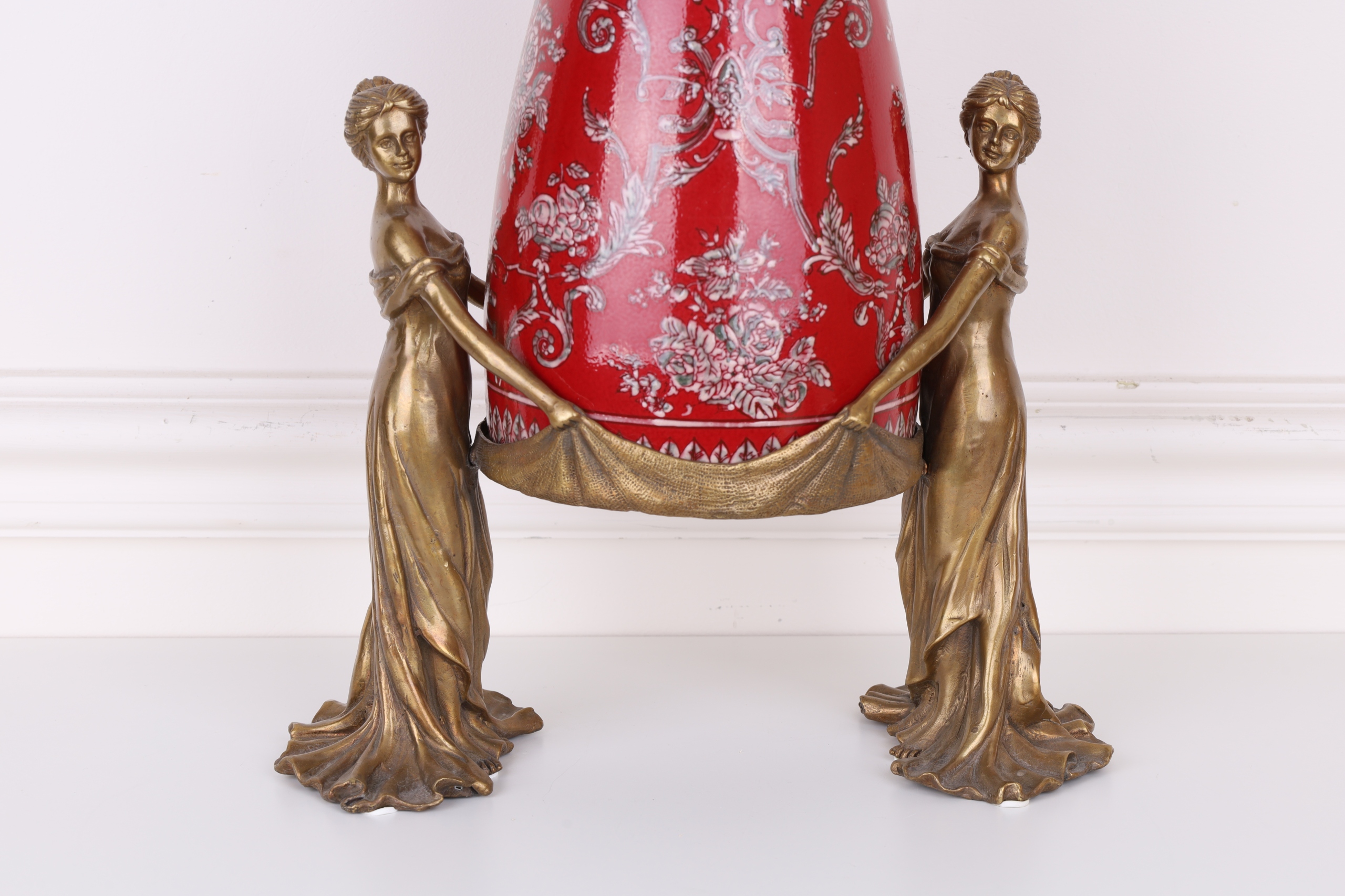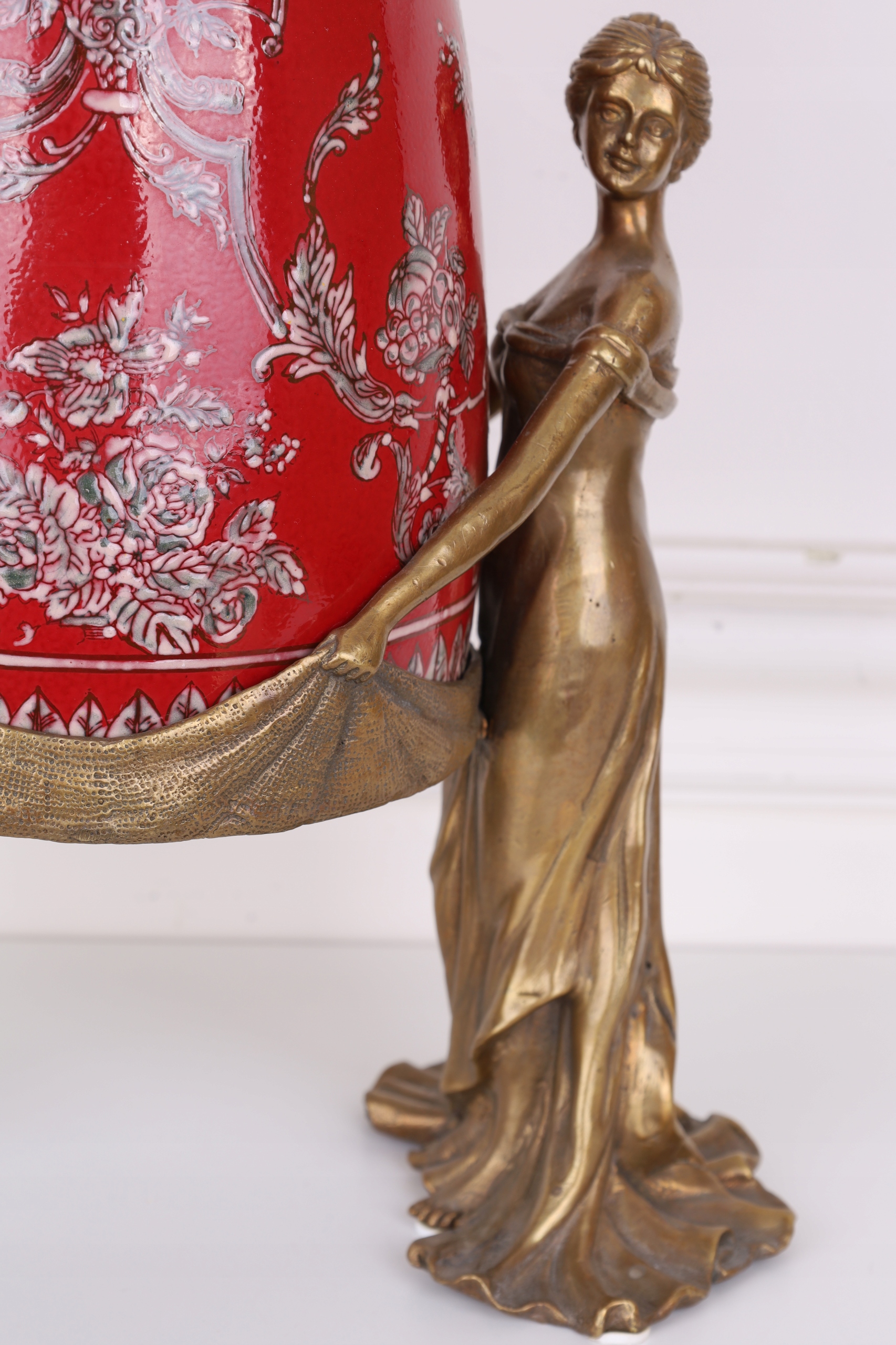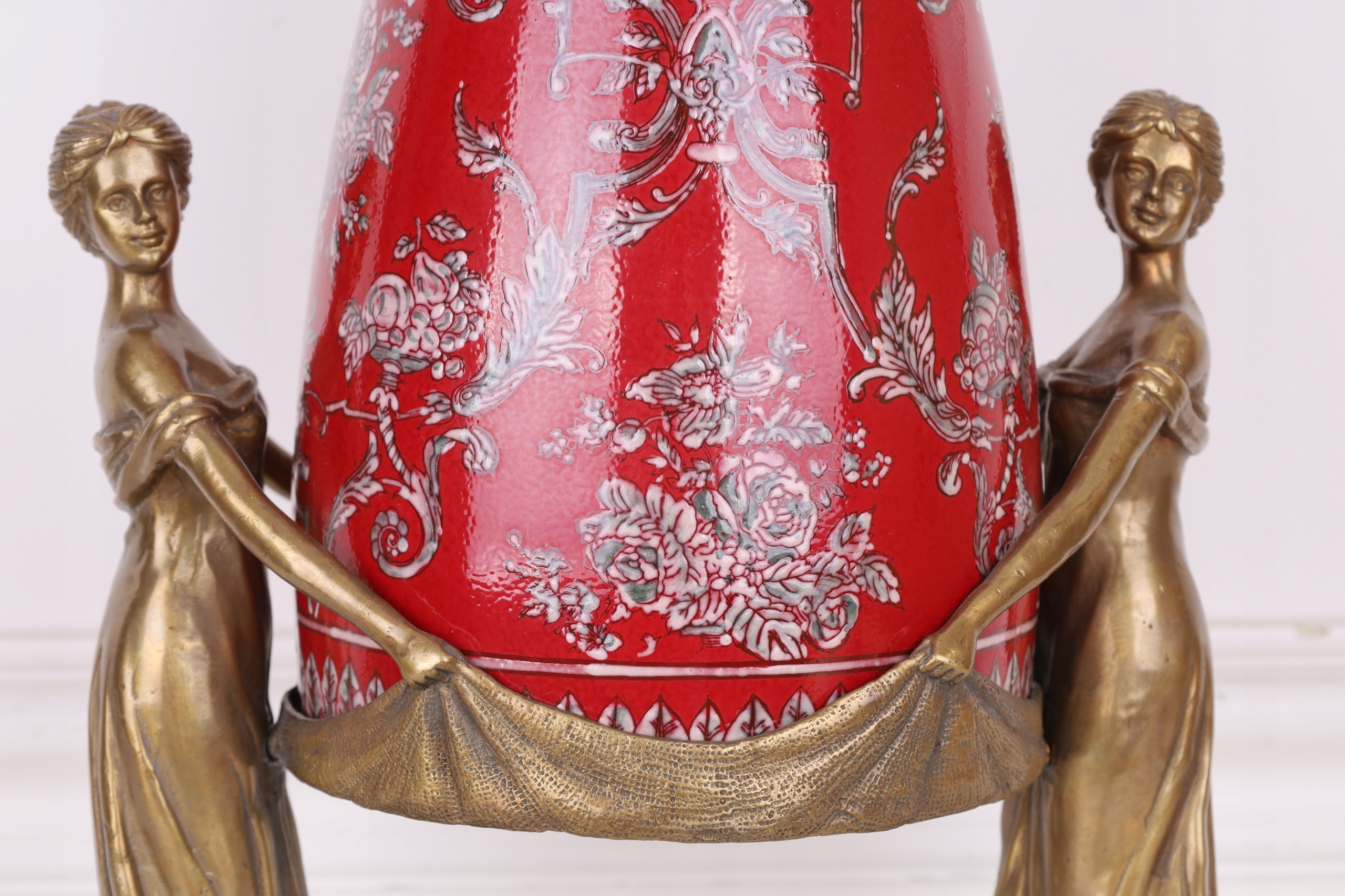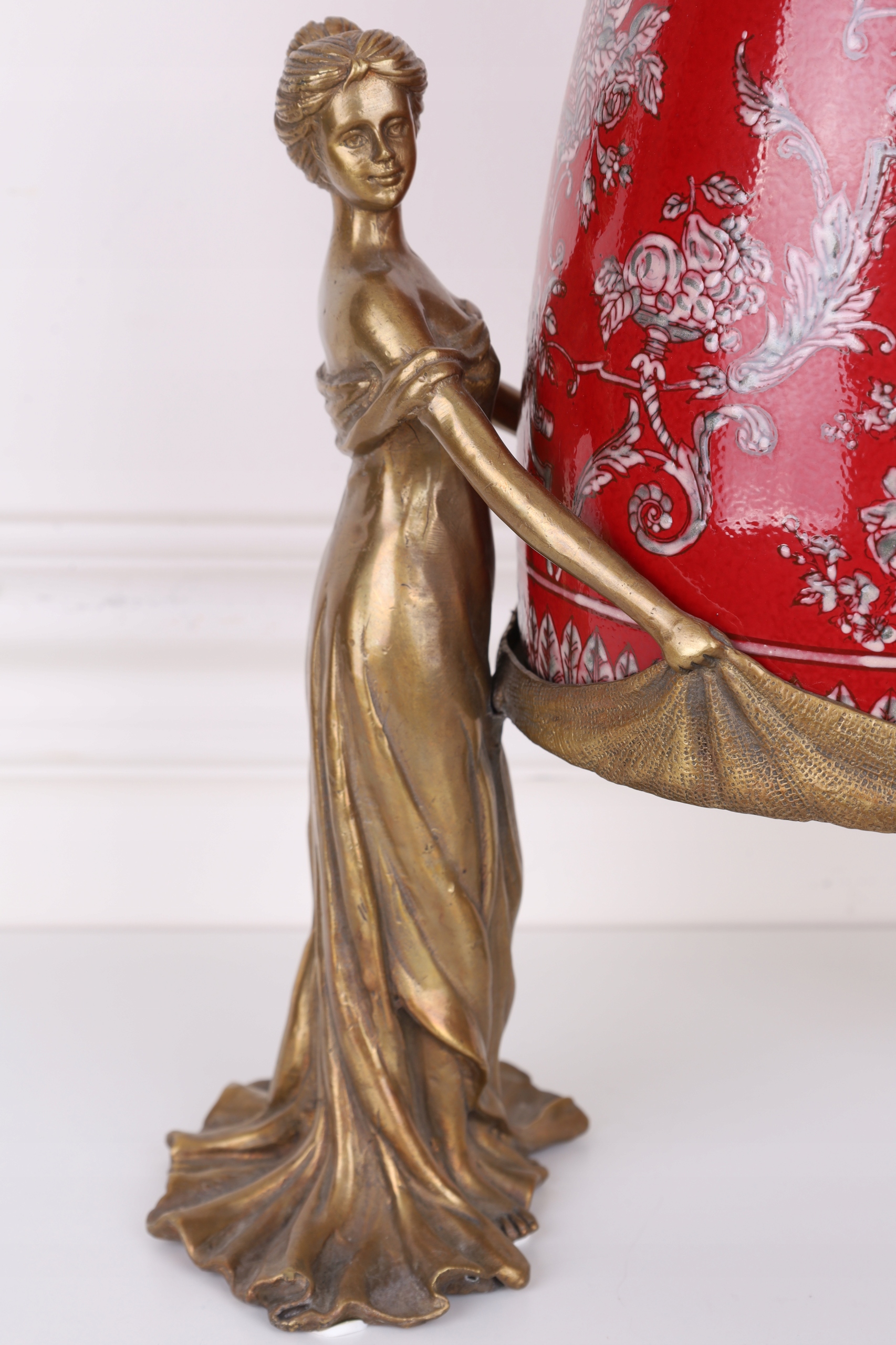 ЧЕРВОНА ВАЗА, порцеляна з бронзою - підписана
