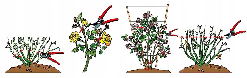 Весеннюю обрезку обычно проводят на рубеже марта и апреля, когда погода достаточно теплая и нет сильных заморозков. . Фактический метод обрезки зависит от происхождения вида или сорта кустарника. Более сильнорастущие сорта обычно обрезают все ниже и выше, а более низкорастущие сорта обычно обрезают сильнее. При низкой обрезке кусты лучше развиваются от основания и дают более сильные побеги. Высоко срезанные кусты не очень густые в нижних частях, часто лишены листвы. У большинства сортов роз в течение вегетационного периода удаляются отцветшие цветки или соцветия. Эта процедура ускоряет последующее цветение и повышает декоративность кустов. Осеннюю обрезку проводят только при необходимости, например, при удалении соцветий, когда кусты рискуют обломиться или когда растение затруднительно укрыть на зиму. р>