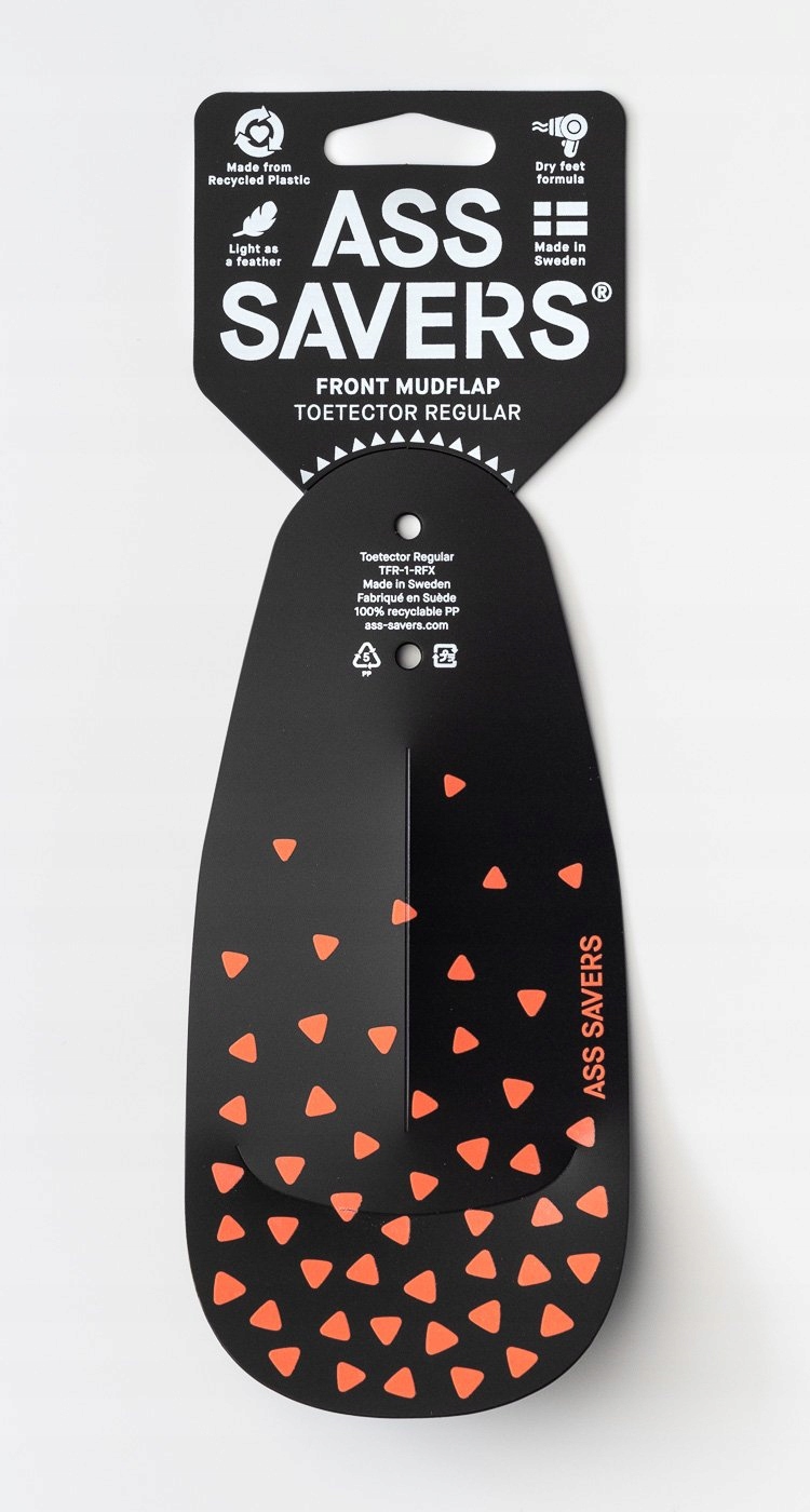 Уникальный брызговик Ass Savers, защищающий ваши ноги от брызг. Он не только предотвращает брызги, но и повышает видимость благодаря светоотражающим рисункам.