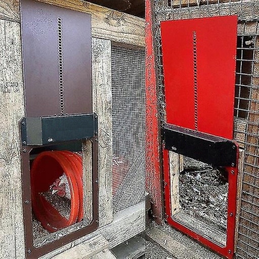 Червоні автоматичні двері для курятника на батарейках