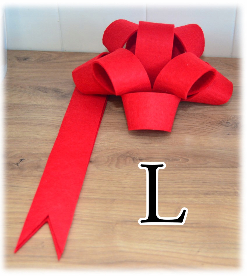размер L - 35 см. Поэтому это никогда не упадет, как это происходит с луком из ленты.