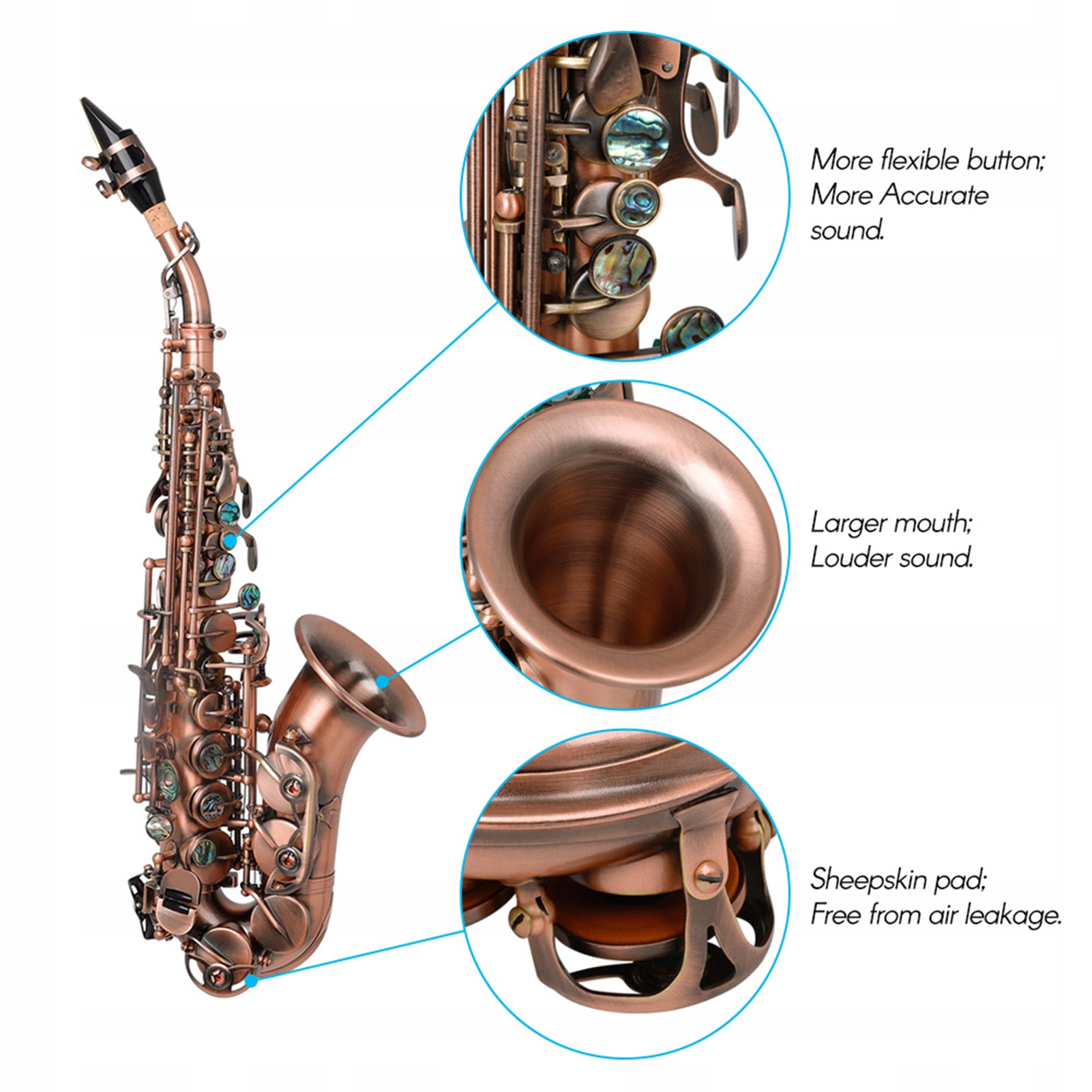 Красный антикварный сопрано-саксофон Bb, деревянный духовой инструмент OD