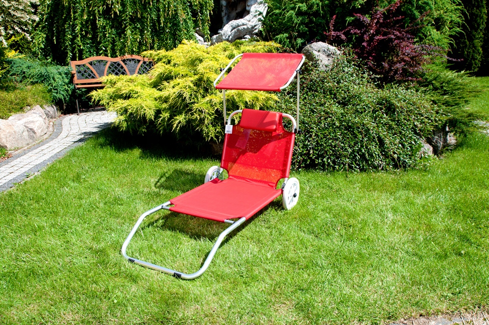Инновационное решение оснащения шезлонга практичными большими колесами делает шезлонг очень удобным в транспортировке. Ткань, из которой изготовлено сиденье, спинка и балдахин, отличается очень высокой прочностью и водостойкостью – ТЕКСТИЛЕН. Предлагаемый шезлонг гарантирует полный комфорт отдыха, а в сложенном виде занимает мало места