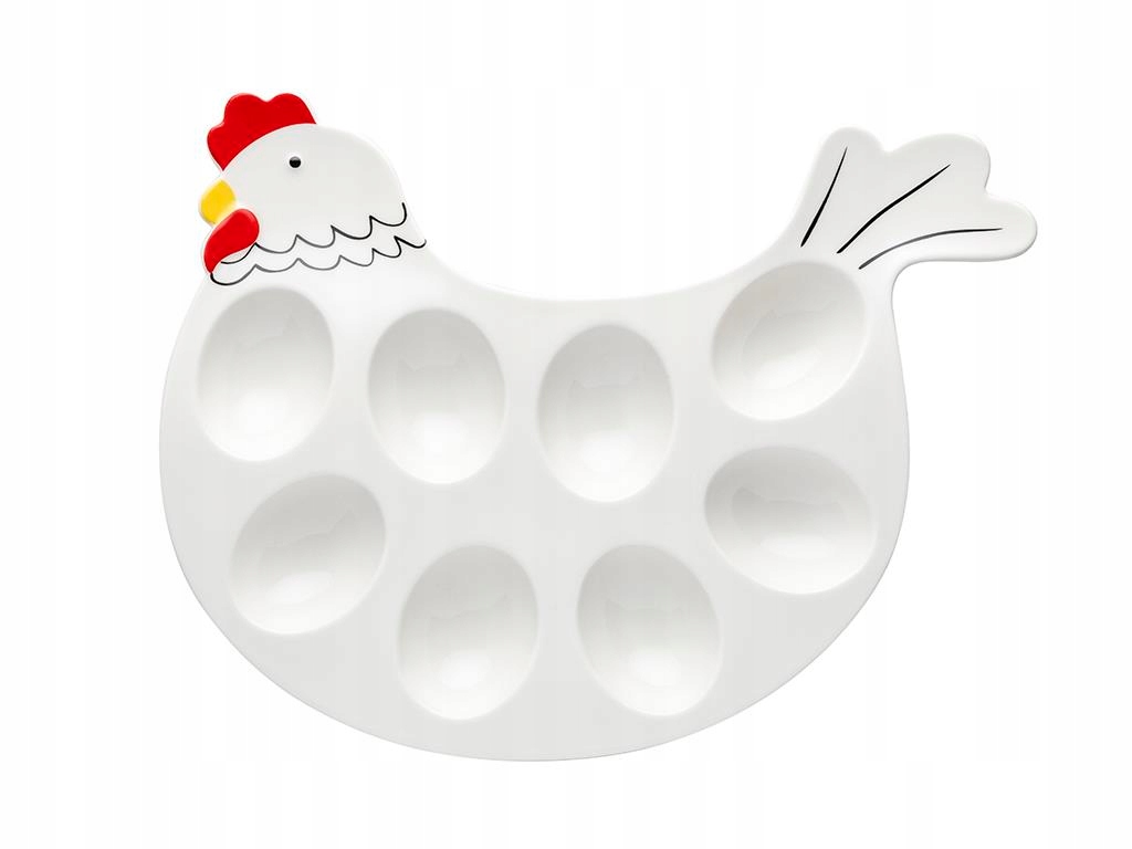 Яичная тарелка Red Beak Hen от Florina изготовлена из фарфора. Имеет 8 отверстий для яиц. Его можно мыть в посудомоечной машине. Это позволяет отображать твердые или мягкие яйца. Идеально подходит к любому столу.