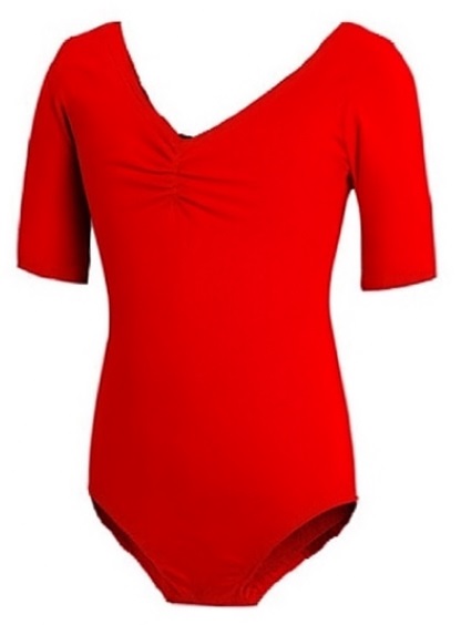 Красное гимнастическое боди с балетными рукавами 3/4 122/128