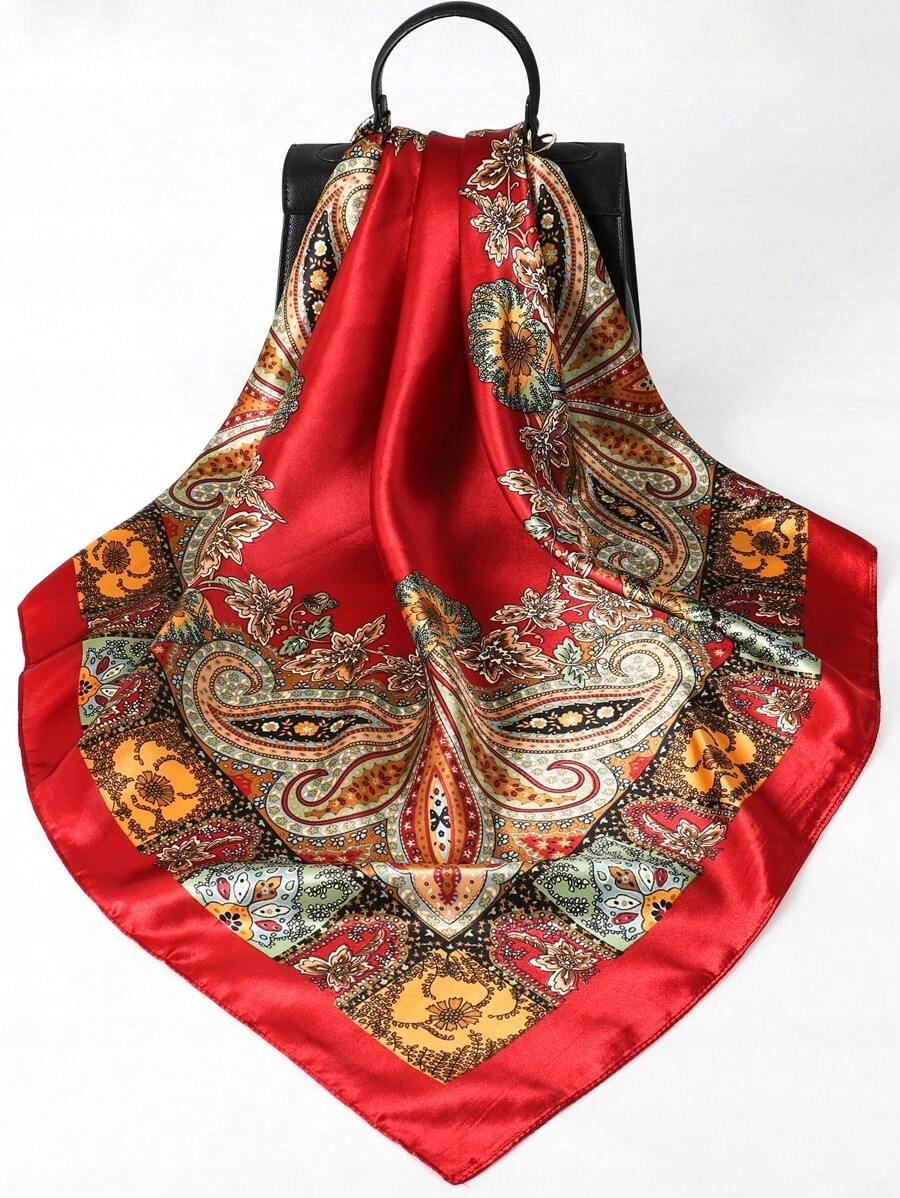 КРАСНЫЙ КЛАССИЧЕСКИЙ ШАРФ-БАНДАНА АТЛАСНЫЙ ШАРФ МИКС УЗОРОВ SHEIN