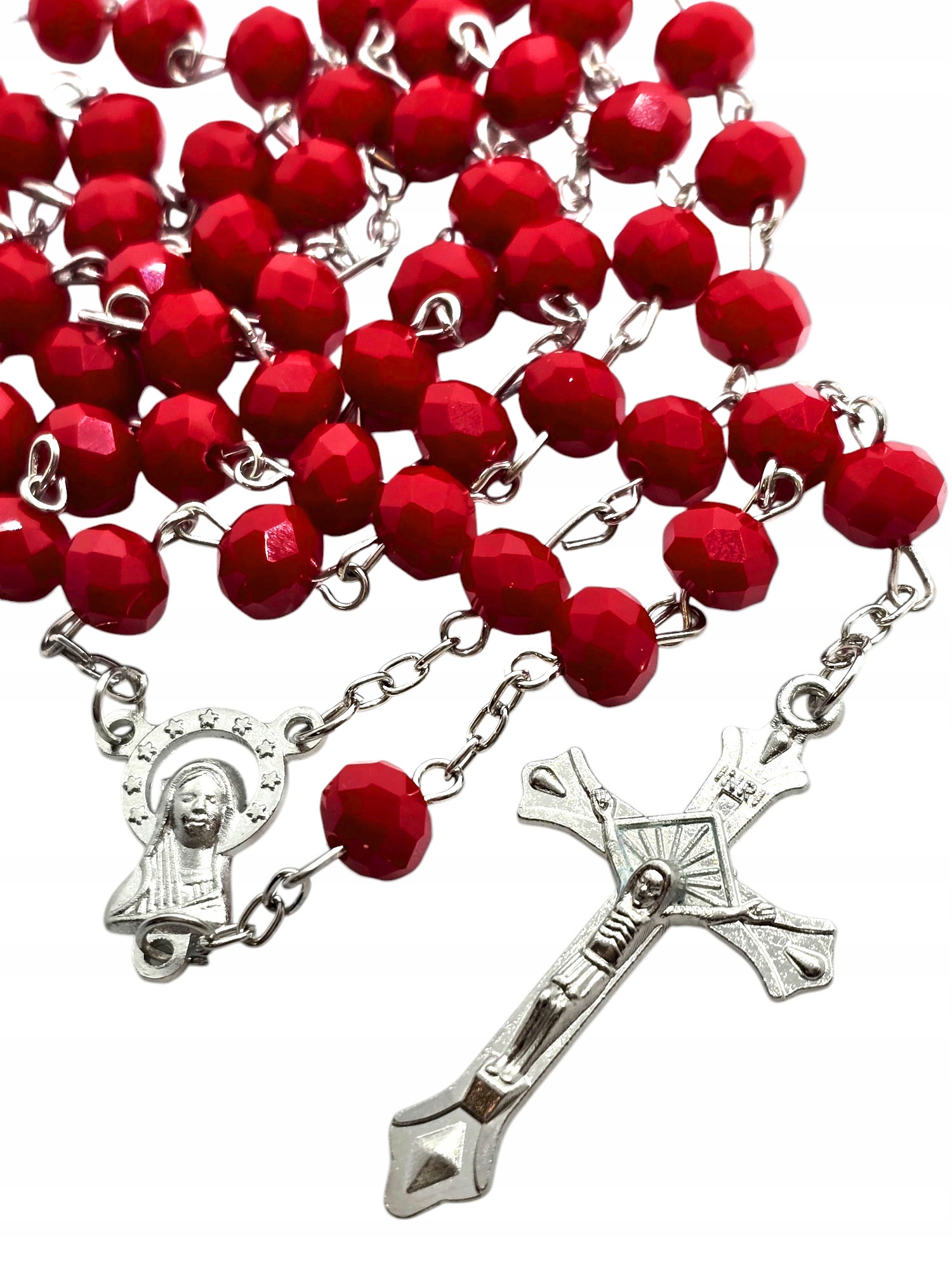 Откройте для себя уникальные красные пластиковые четки, восхищающие своим внешним видом. Бусины, напоминающие мелкие кристаллы, отражают свет, создавая эффектное свечение. Коннектор с изображением Девы Марии и изящный крест, венчающий четки, придают ему неповторимый характер. Эти легкие и прочные четки - идеальный выбор для людей, которые ценят оригинальный дизайн и удобство использования.