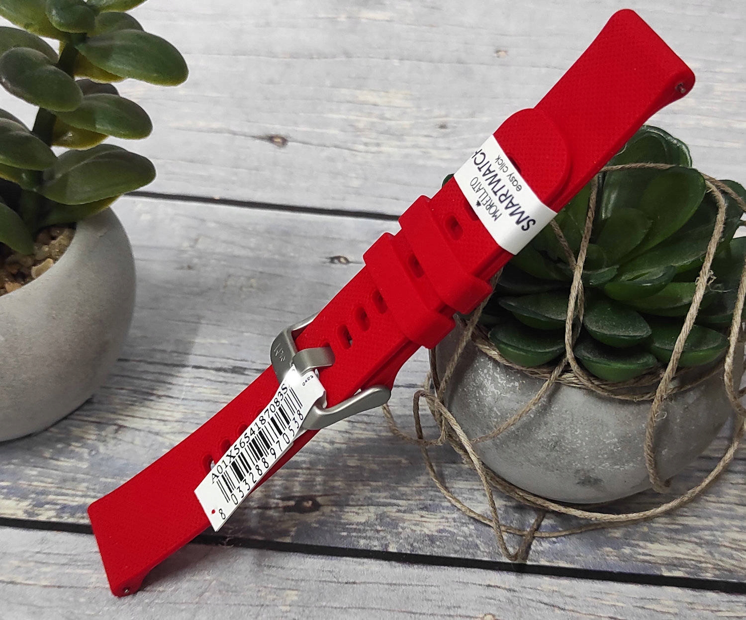 Красный каучуко-силиконовый прямой гладкий матовый водонепроницаемый ремешок для умных часов MORELLATO Easy Click. Ширина 20 мм. Антиаллергенная пряжка. Подходит ко всем часам со стандартным креплением шириной 20 мм. Телескопы в комплекте.