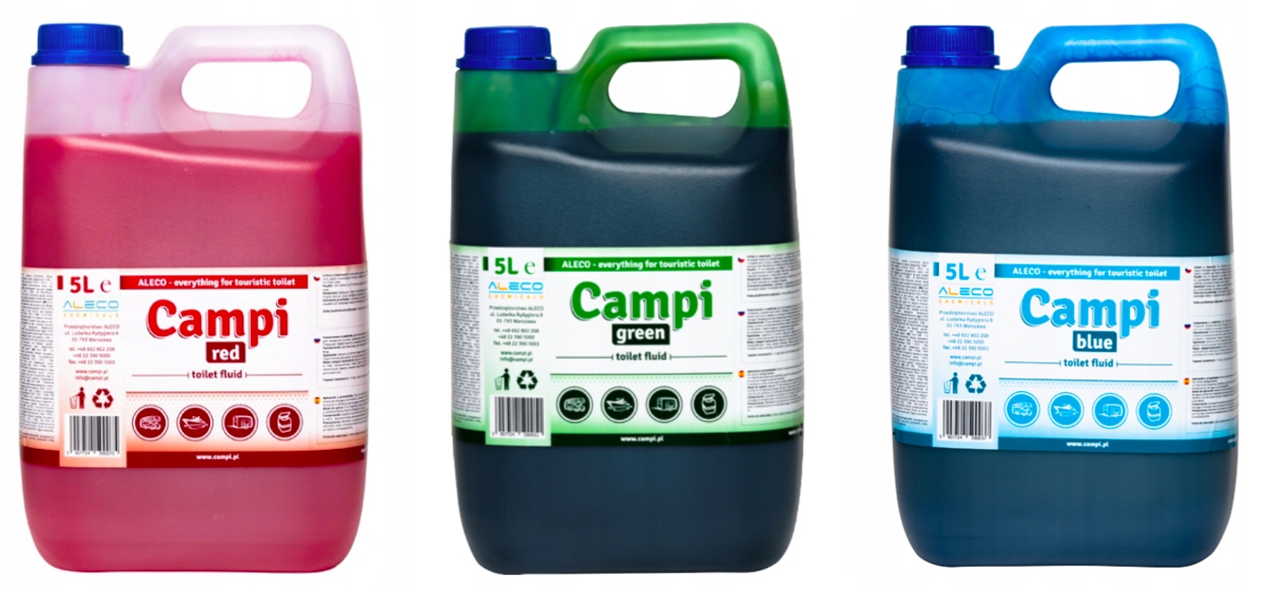 КРАСНЫЙ СИНИЙ ЗЕЛЕНЫЙ КОМПЛЕКТ ЖИДКОСТИ ДЛЯ ТУАЛЕТА CAMPI 15 Л