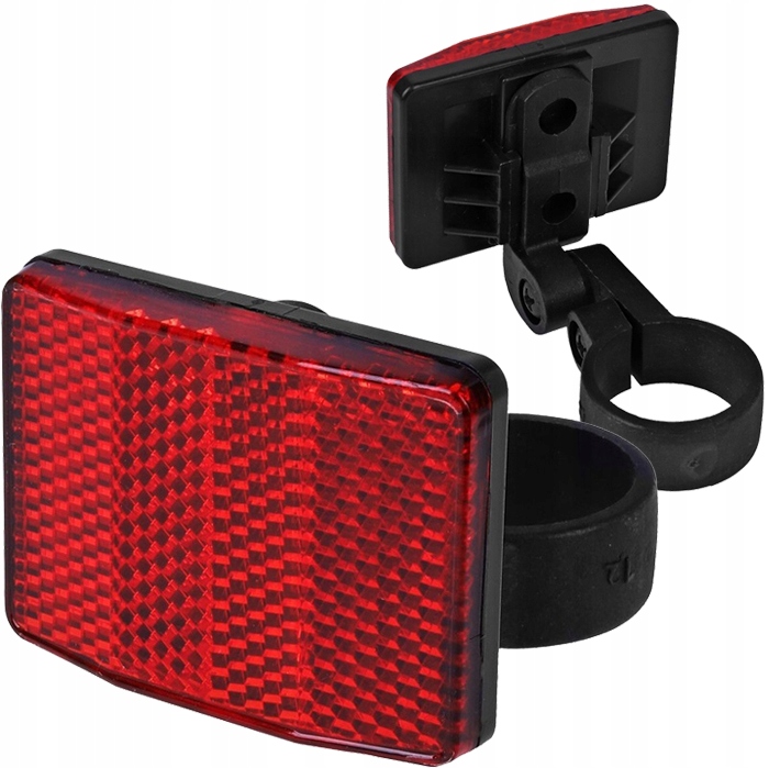 Красный прямоугольный велосипедный отражатель, который значительно улучшает нашу видимость в темное время суток или в сложных погодных условиях. Имеет кронштейн для крепления подседельного штыря велосипеда.