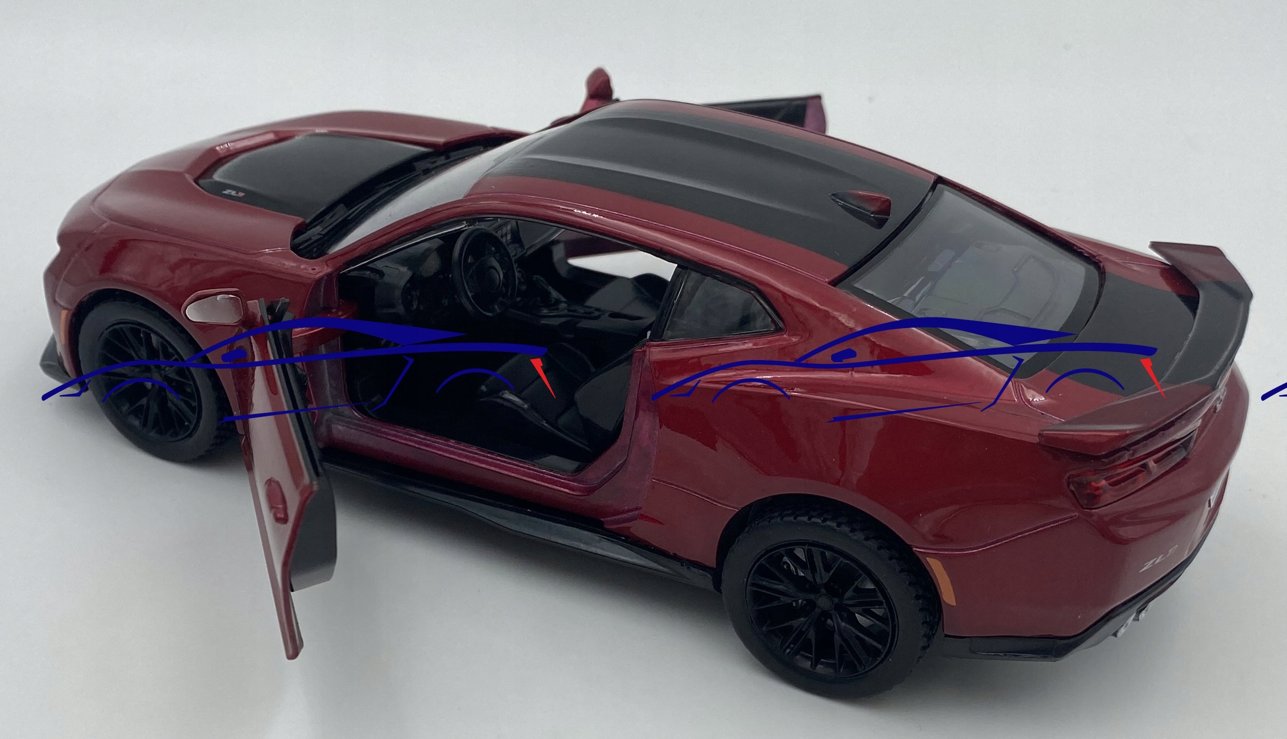 Модель автомобиля Шевроле отличается вниманием к деталям. Имеет подвижные элементы - двери, колеса.