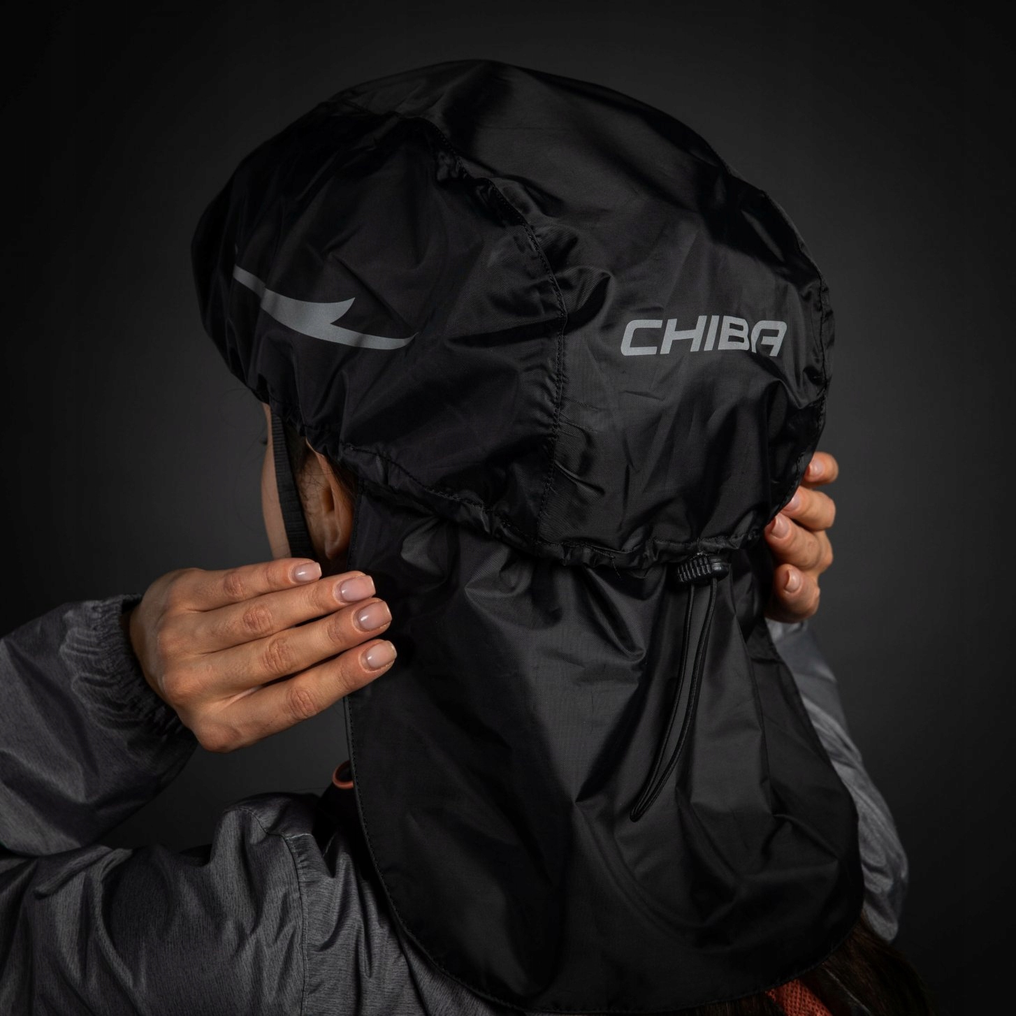 Протектор шлема без дождя Обложка Chiba предоставит вам обоих вас обоих, и у нее есть рефлексивные элементы с каждой стороны.